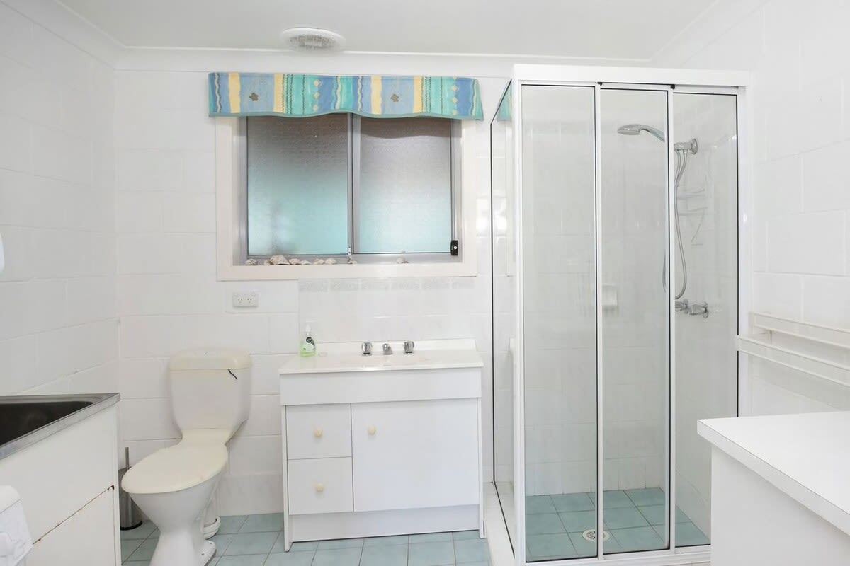 Bathroom/Laundry - Shower, toilet, vanity, washing machine and dryer