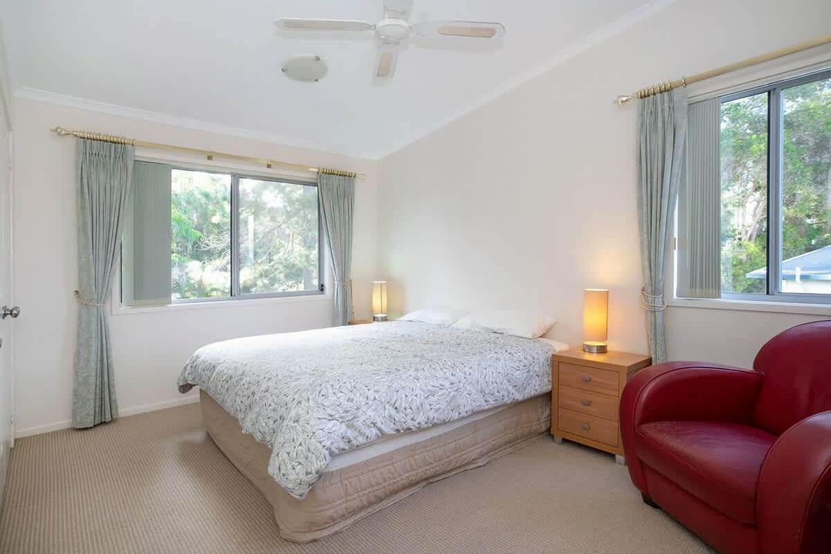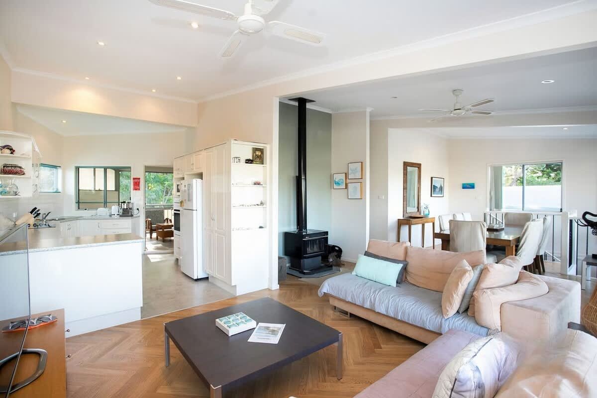 This relaxed, well appointed, double storey home is where your family holiday fun begins. Accommodating 8 guest, with 3 bedrooms, two bathrooms, multiple outdoor living spaces, and a fully equiped kitchen including dishwasher and Delonghi coffee pod machine. Enjoy a BBQ with family on the large covered front deck or cosy up in front of the fireplace during the cooler months. (Please note, fire wood is not provided, guests are required to bring their own firewood. This can be purchased at the Termeil petrol station)