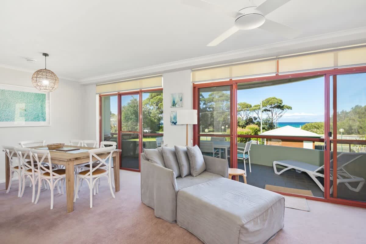 Located directly across the road from beautiful Mollymook beach, this spacious first floor apartment with ocean views is perfect for your next coastal escape. The Fathoms apartment complex includes a fenced grassy yard, communal swimming pool and tennis court. Air conditioning, Wi-Fi, linen and Weber Q provided.