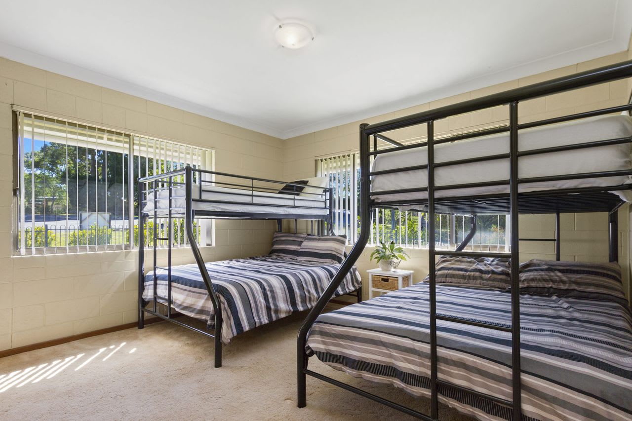 Enjoy the pleasures of walking down to the lake that offers waterskiing, fishing and loads of activities for all the family. This three bedroom, air conditioned retreat accommodates 11 people with one queen bed, and three triple bunks (double bed with single over). Let the kids enjoy the lake while you relax on the deck with undisturbed views.