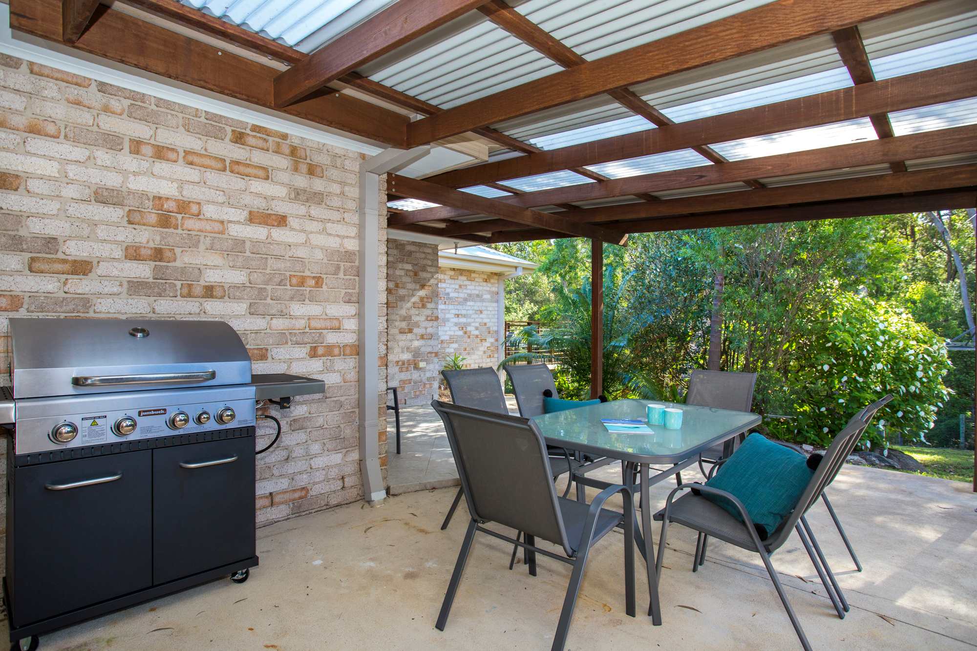 Outside, you'll find an undercover alfresco entertaining area with a gas BBQ and outdoor dining setting.