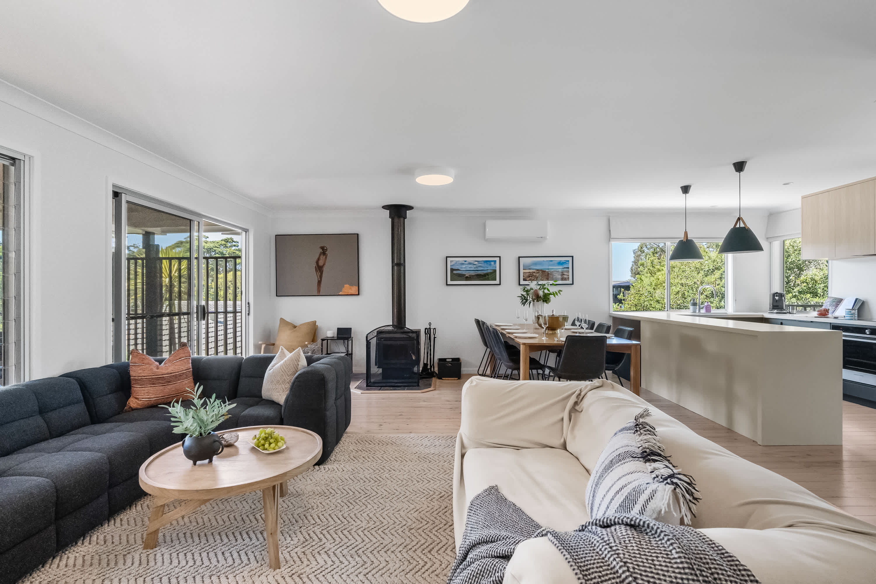 Relax and unwind in this spacious, timeless beach house. Ideal for families or groups of up to 10 guests, providing a comfortable and family-friendly environment. The property is thoughtfully designed with comfort in mind, beautifully furnished and caters for large or multi generational families. Featuring open plan living the well equipped modern kitchen, dining and living room flow effortlessly through to the outdoor entertaining area.