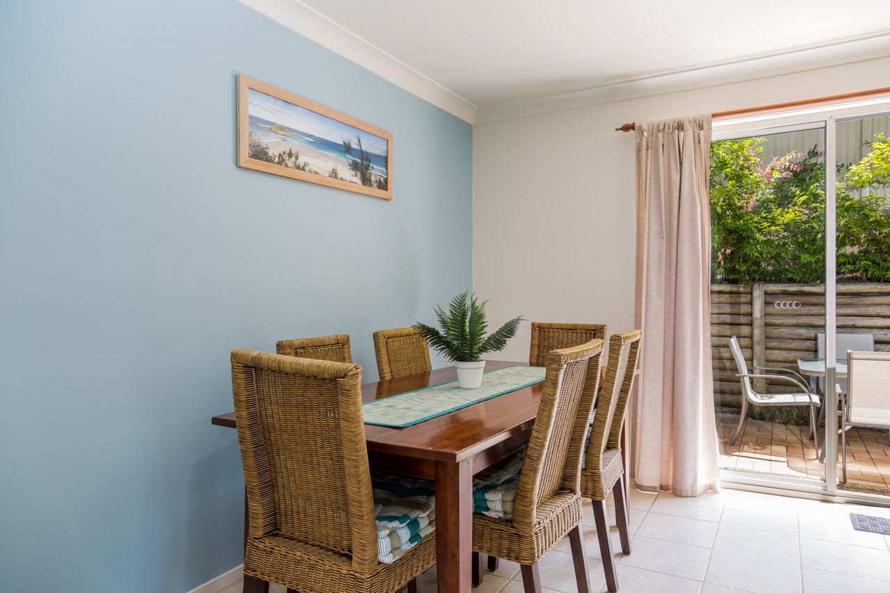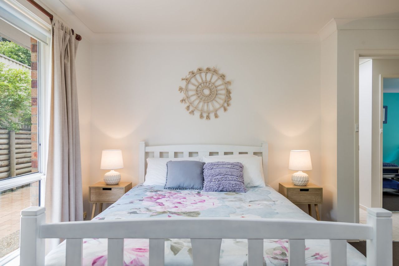 The oversized courtyard runs the whole length of the villa and is fully fenced so the perfect area for kids to play. There is also a six-seater outdoor setting, Weber BBQ and your own clothesline.