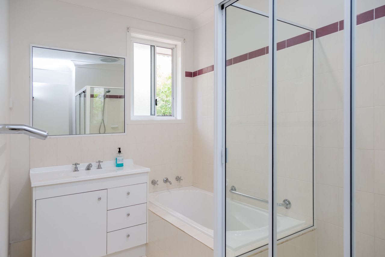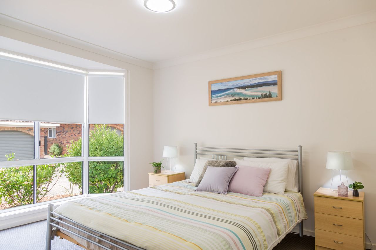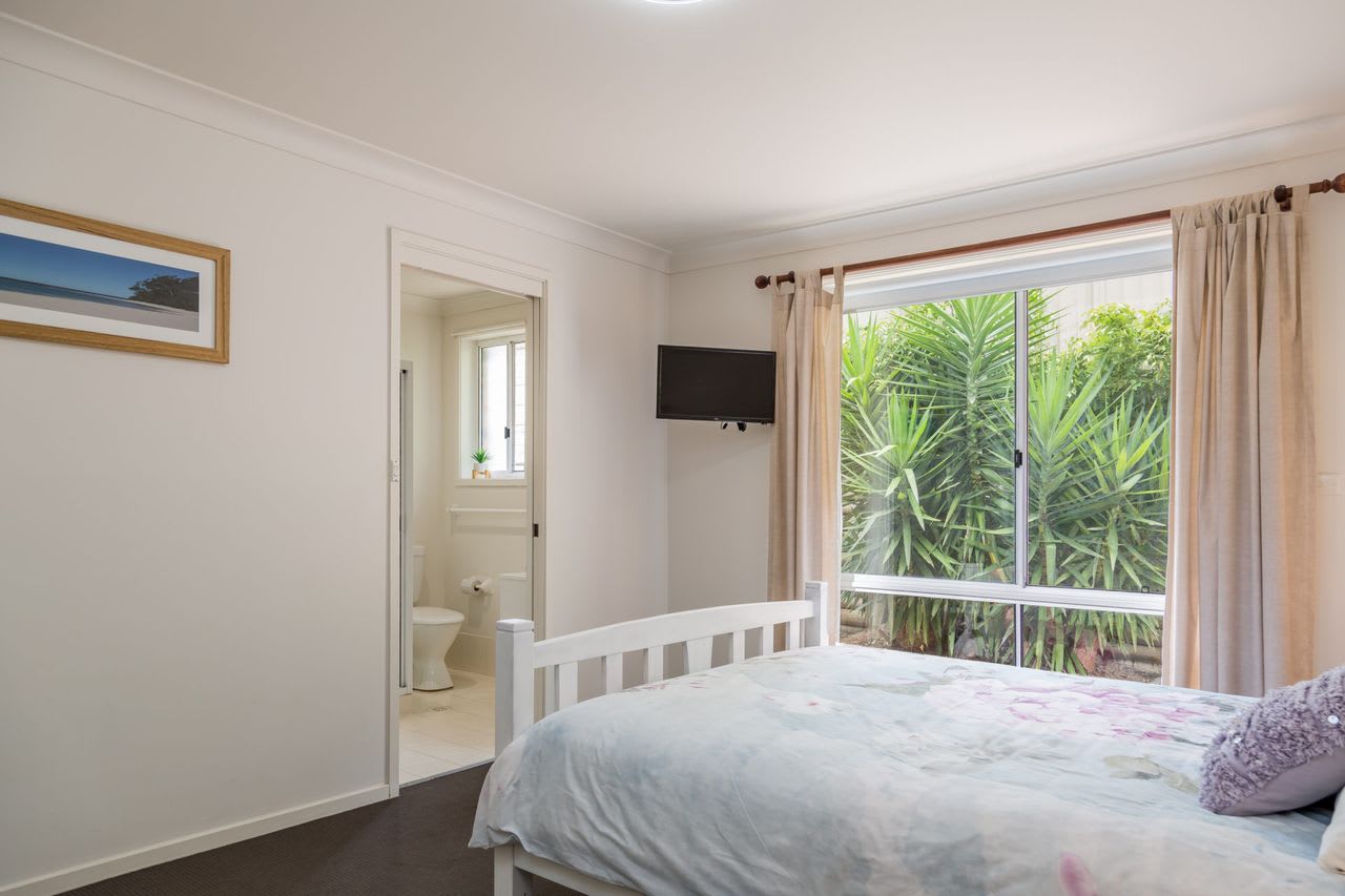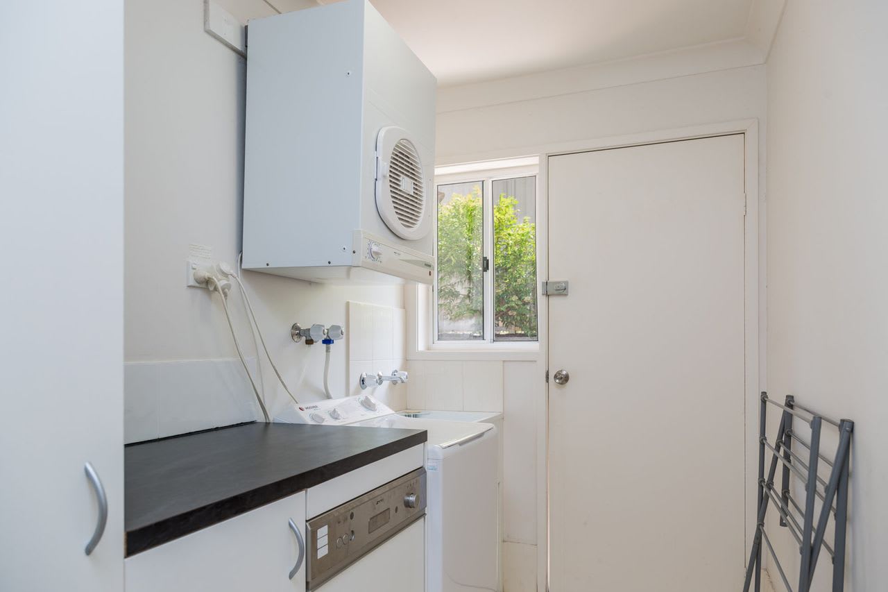 The ultra comfortable recliner lounge suite allows you relax in your home away from home, which is accompanied by downlights and a ceiling fan. The spacious and well-equipped kitchen is filled with loads of natural light and offers a breakfast bar and dishwasher (located adjacent in the laundry). Security doors allow the summer breeze through the villa and there is new split system air conditioning.