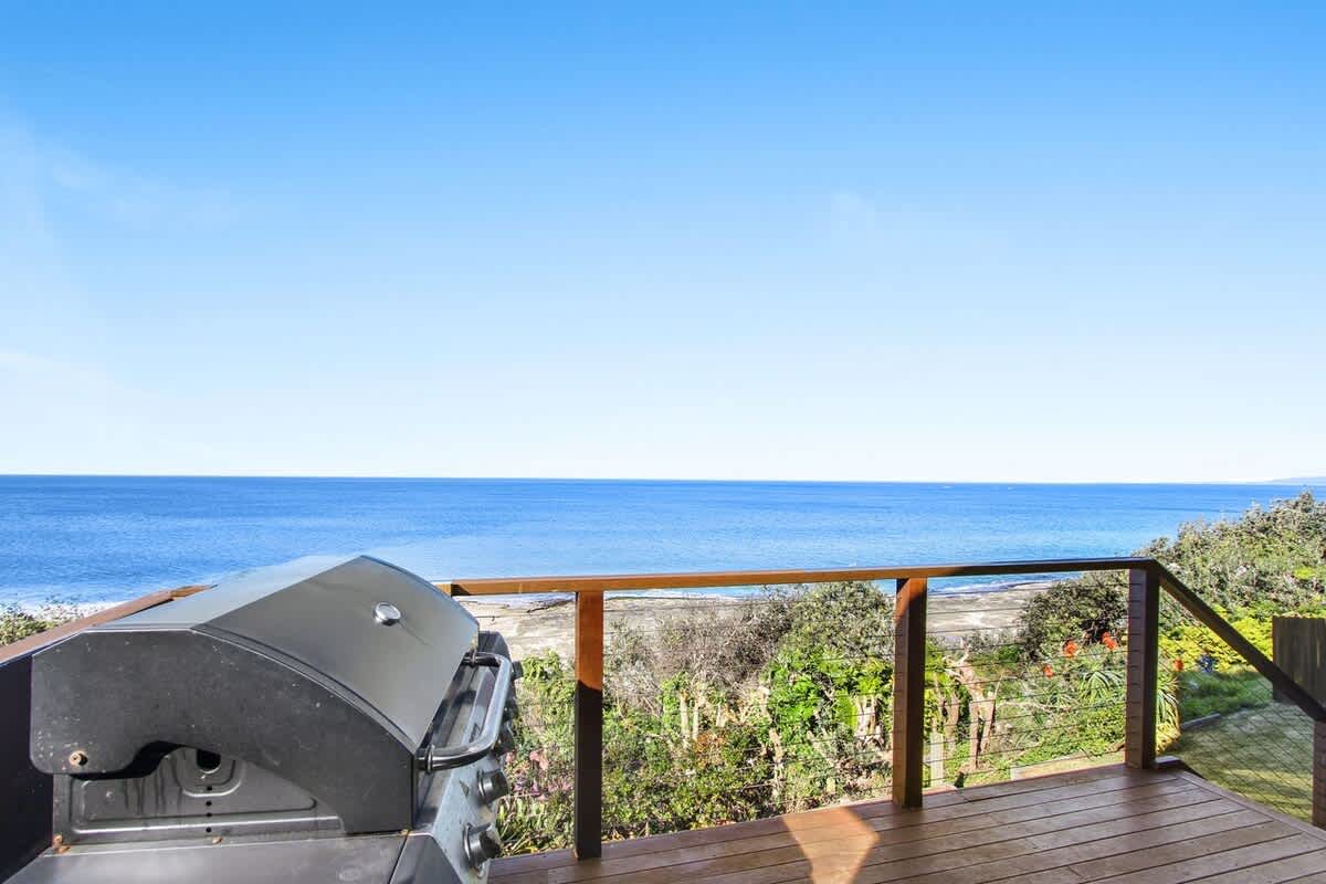 The House - Modern beach styled waterfront property, with stunning panoramic ocean views from the deck, living, dining, kitchen areas, and master bedroom. Also featuring open plan living and full length windows to soak up the sun and the beautiful view.