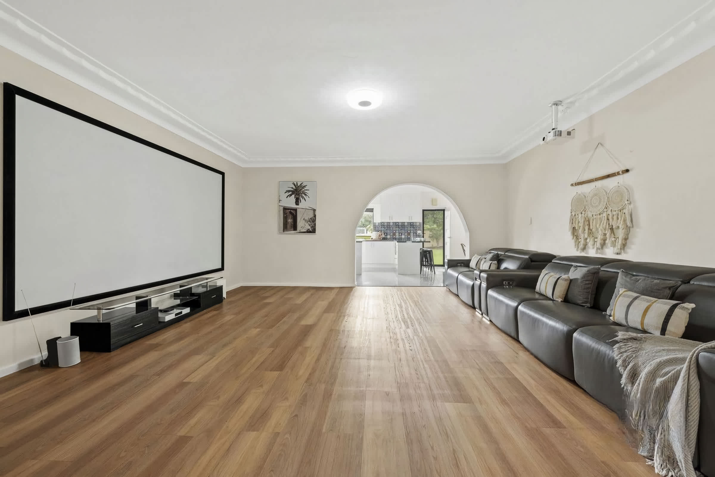 Multiple living areas including central lounge room with Huge projector screen for movie nights on Netflix