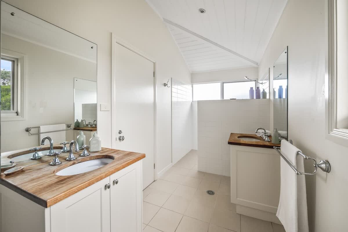 The highlight of the property is the upstairs parents' retreat, which boasts the best of both worlds with breathtaking beach views and beautiful views of Pigeon Hose Mountain where you can watch the sun set, with a verandah providing a private escape. The parents retreat features a kings size bed, small kitchenette and sitting areas.