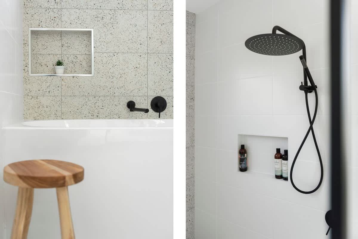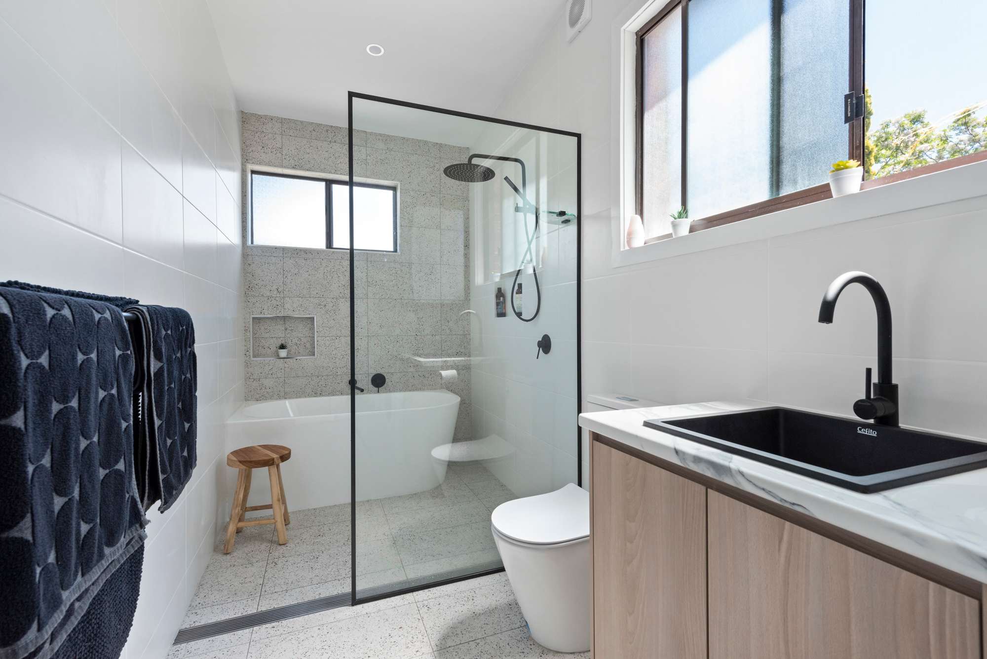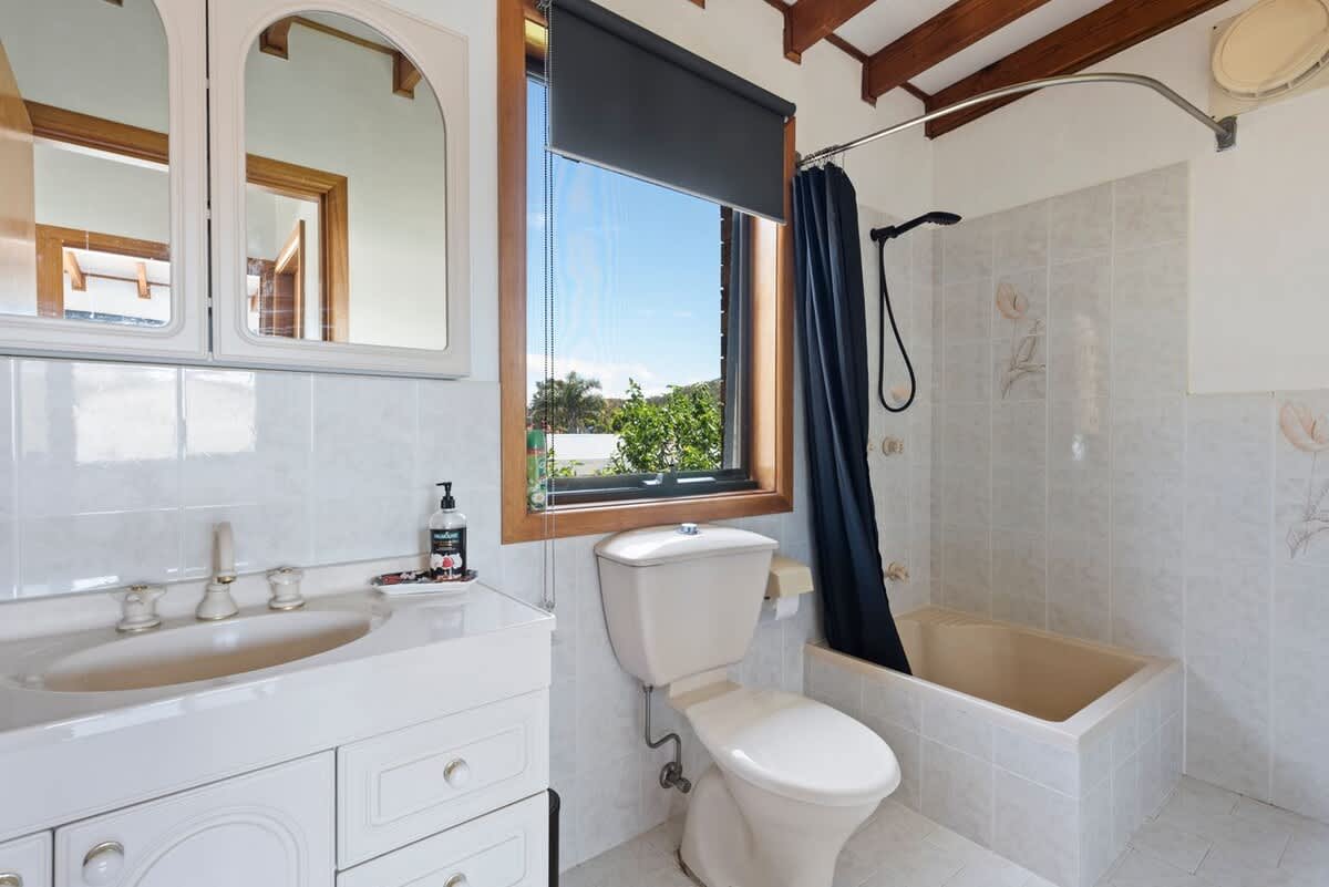 Main bathroom/laundry has a bath, shower and toilet. Also including a vanity, washing machine and dryer.