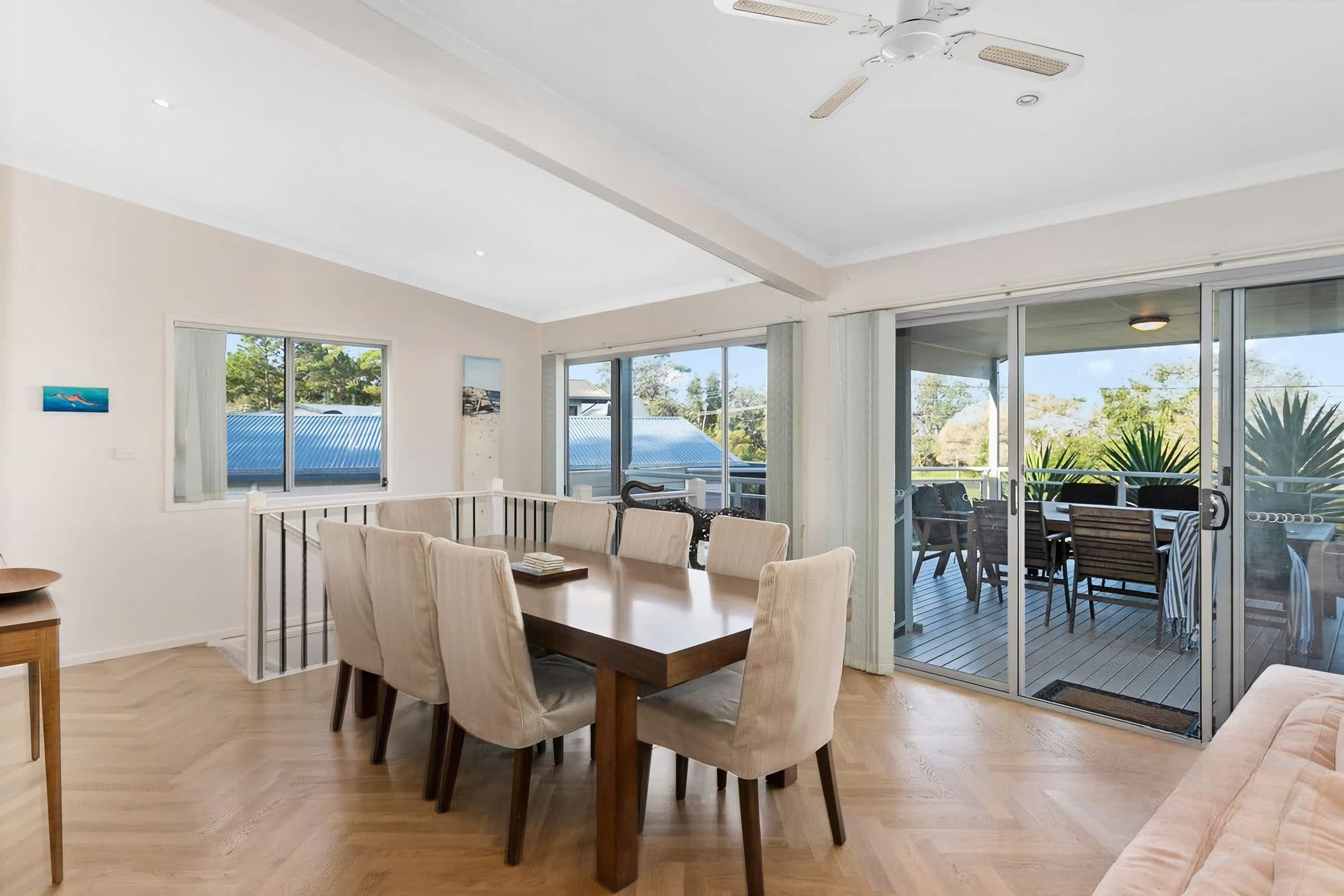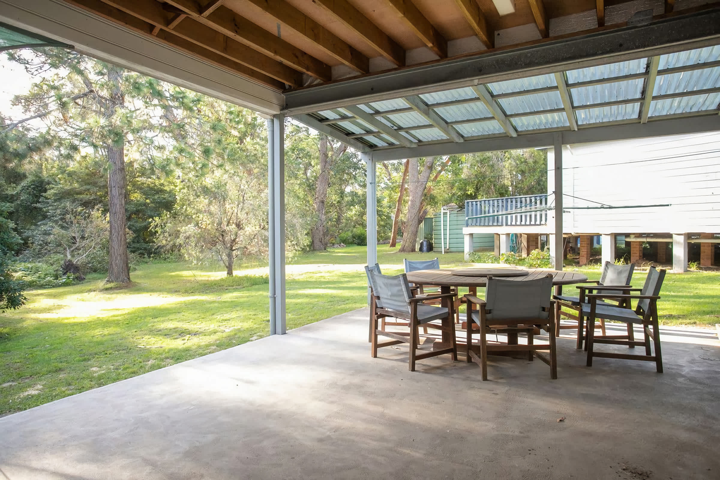 This relaxed, well appointed, double storey home is where your family holiday fun begins. Accommodating 8 guest, with 3 bedrooms, two bathrooms, multiple outdoor living spaces, and a fully equiped kitchen including dishwasher and Delonghi coffee pod machine. Enjoy a BBQ with family on the large covered front deck or cosy up in front of the fireplace during the cooler months. (Please note, fire wood is not provided, guests are required to bring their own firewood. This can be purchased at the Termeil petrol station)