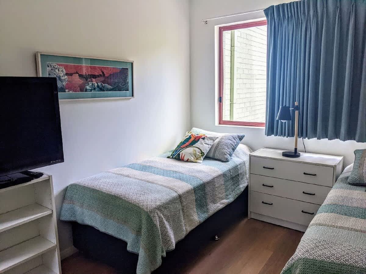Bedroom 2 - 2 Single beds and a pedestal fan