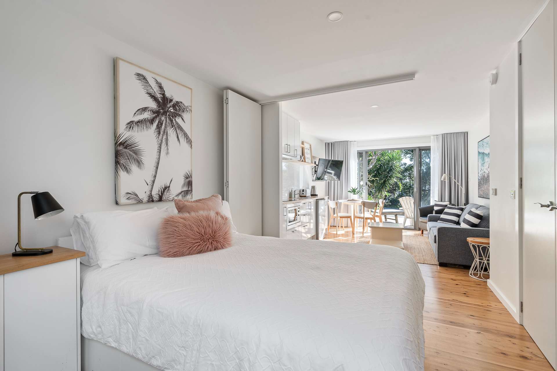 Downstairs is a charming studio apartment that can be locked off from the rest of the house to create a parents retreat, complete with kitchenette and open living area with TV and adjoining bathroom.