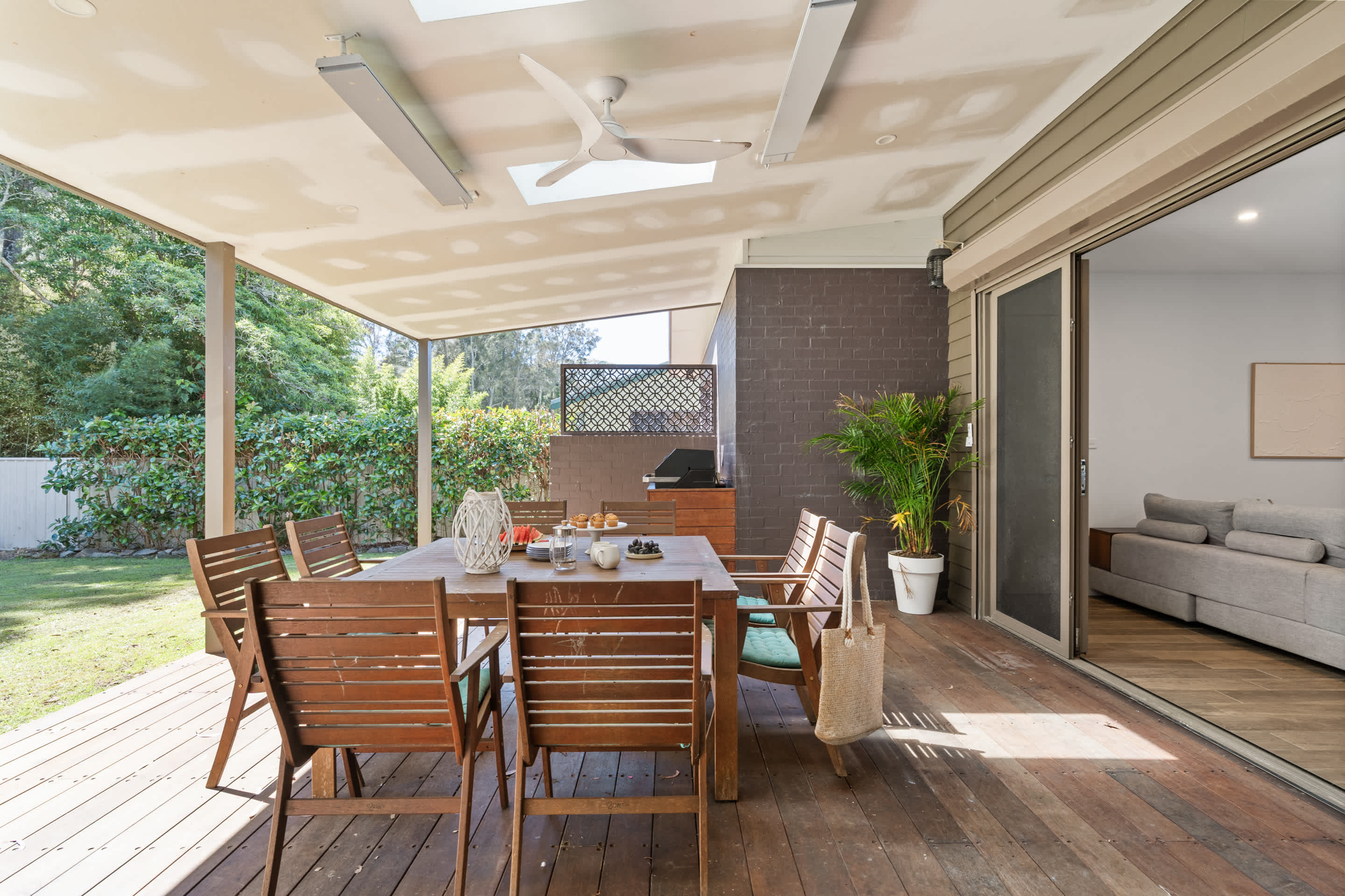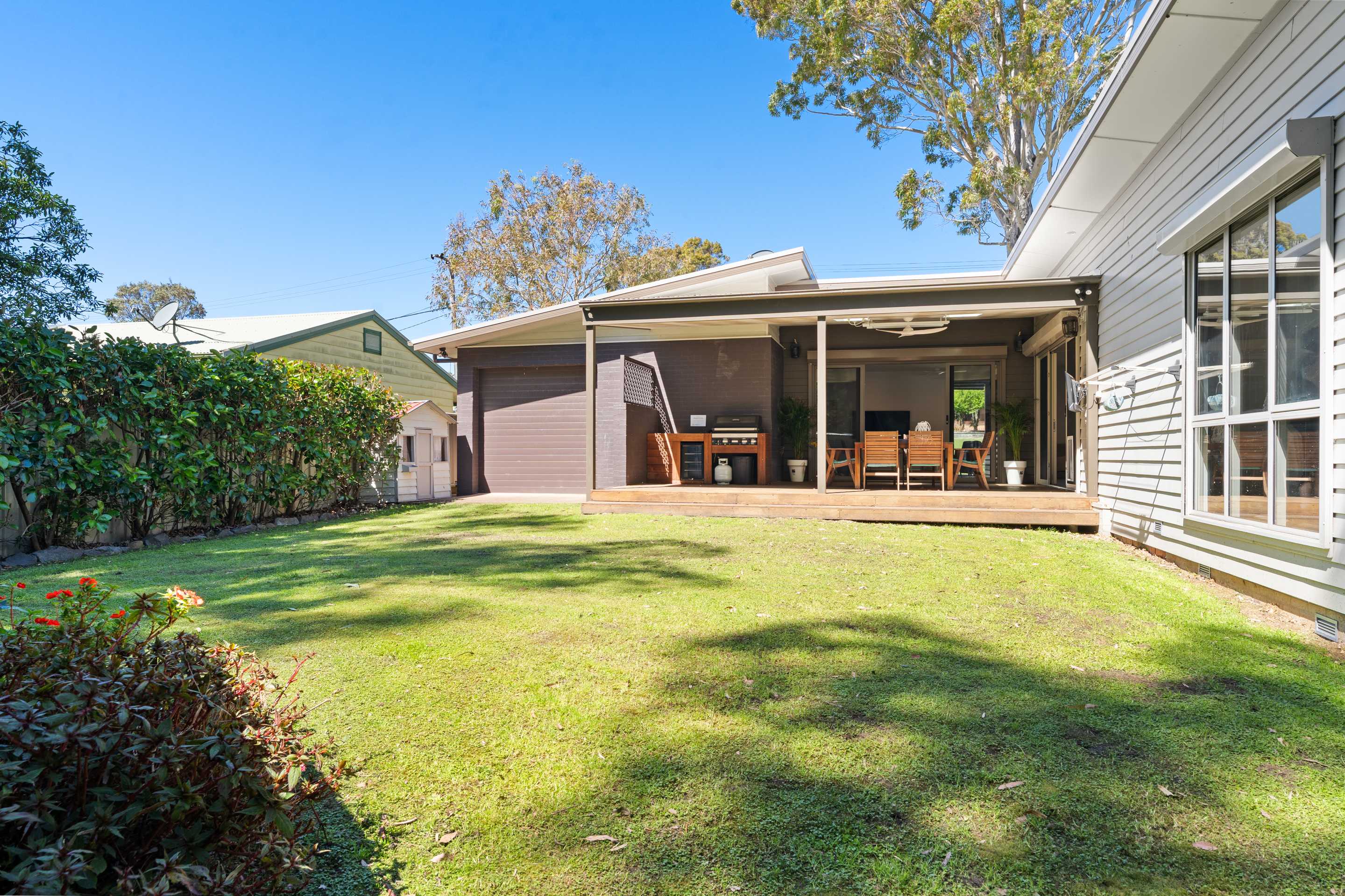 Step outside to enjoy the natural surroundings. The spacious deck is ideal for morning coffees or evening BBQs, while the outdoor shower brings a touch of beachside living to your stay.