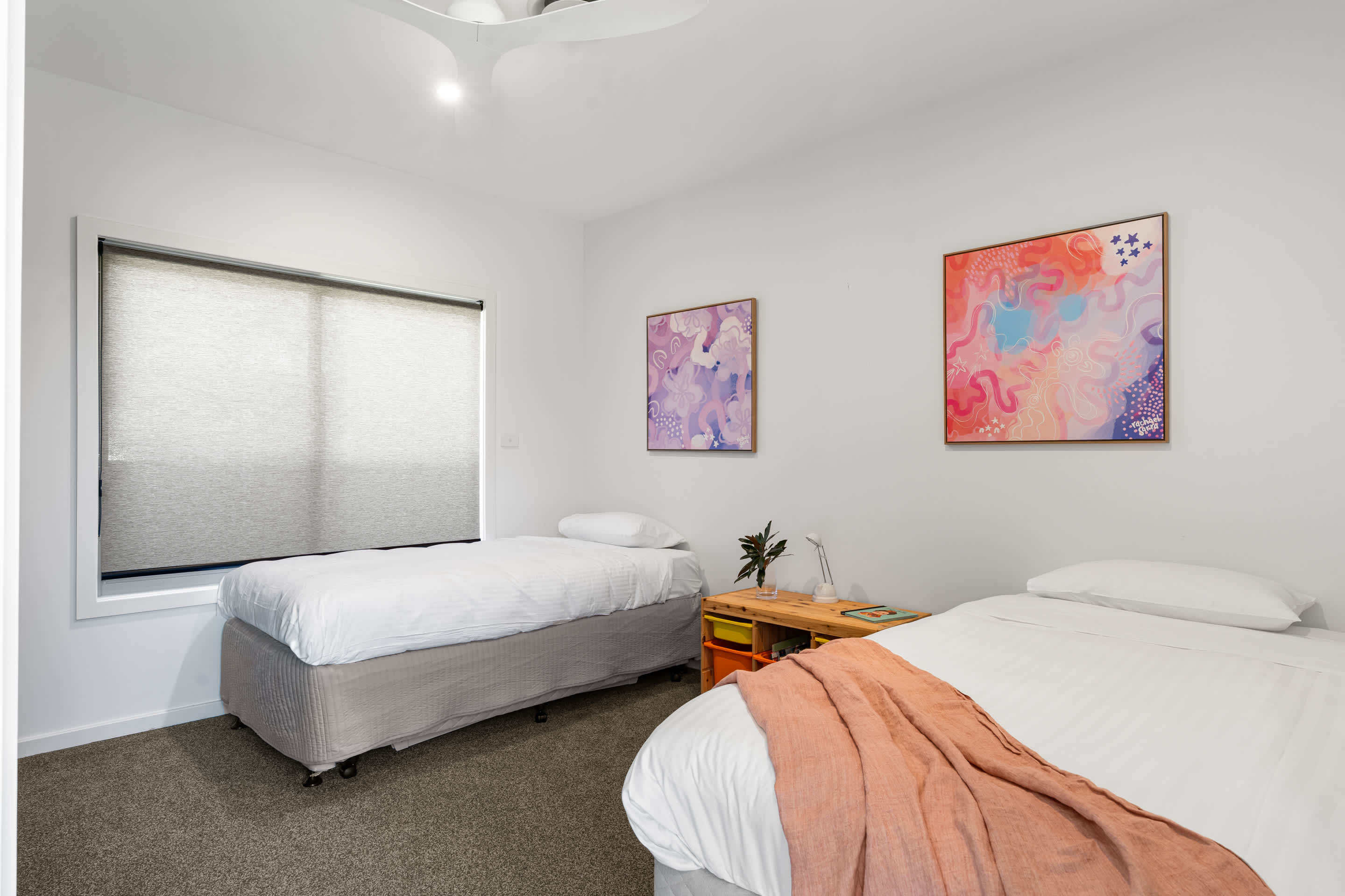 Bedroom 2 : King Single, King Single, Built In Robe, Ceiling Fan