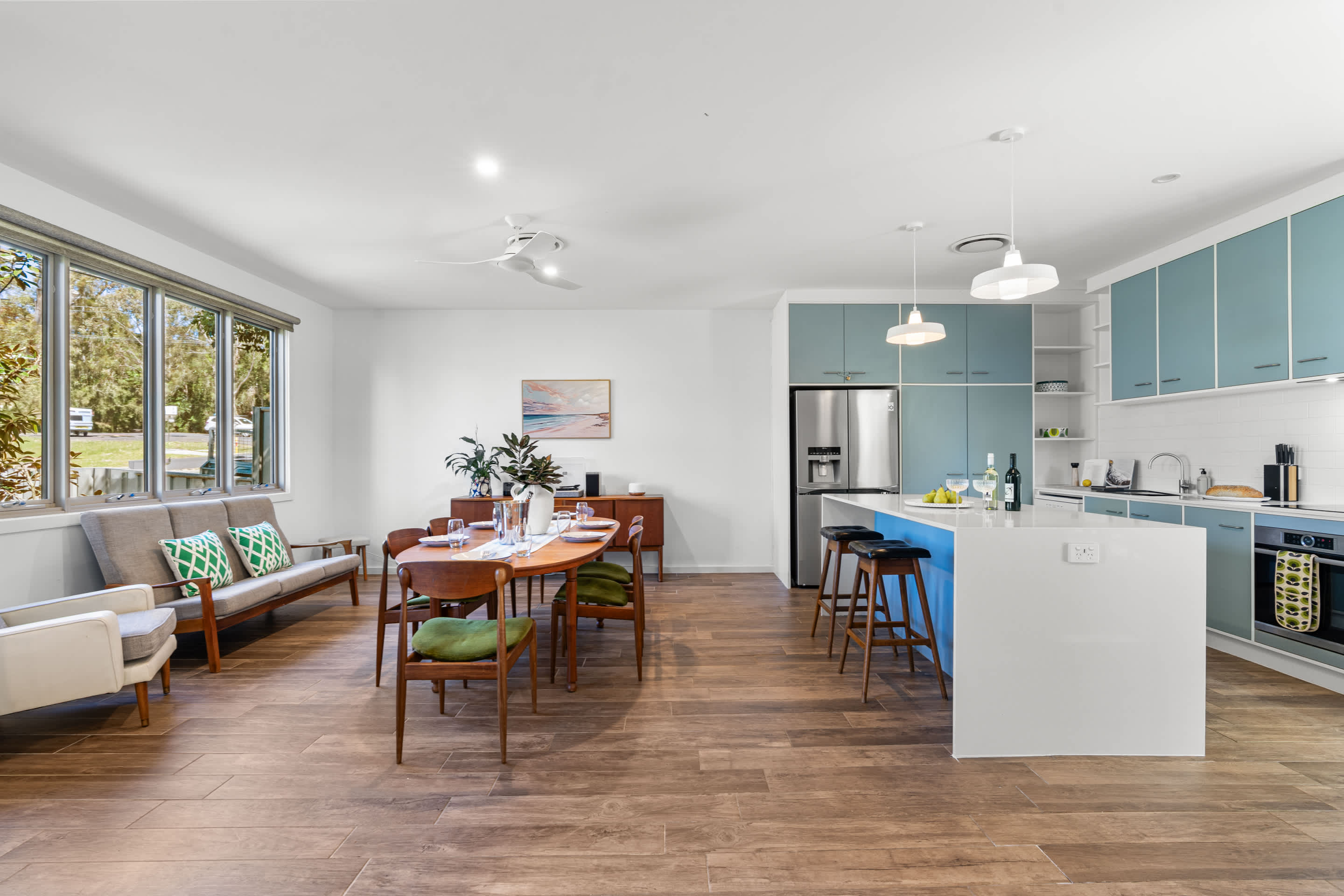 Inside, you’ll find comfortable bedrooms, a bright and open living area, and a modern kitchen equipped with everything you need for casual dining. Gather for a home cooked meal, stream your favourite shows, or simply unwind in the cozy lounge room after a day out. Thoughtful features like ducted air conditioning ,ceiling fans, and laundry facilities add extra convenience for longer stays.