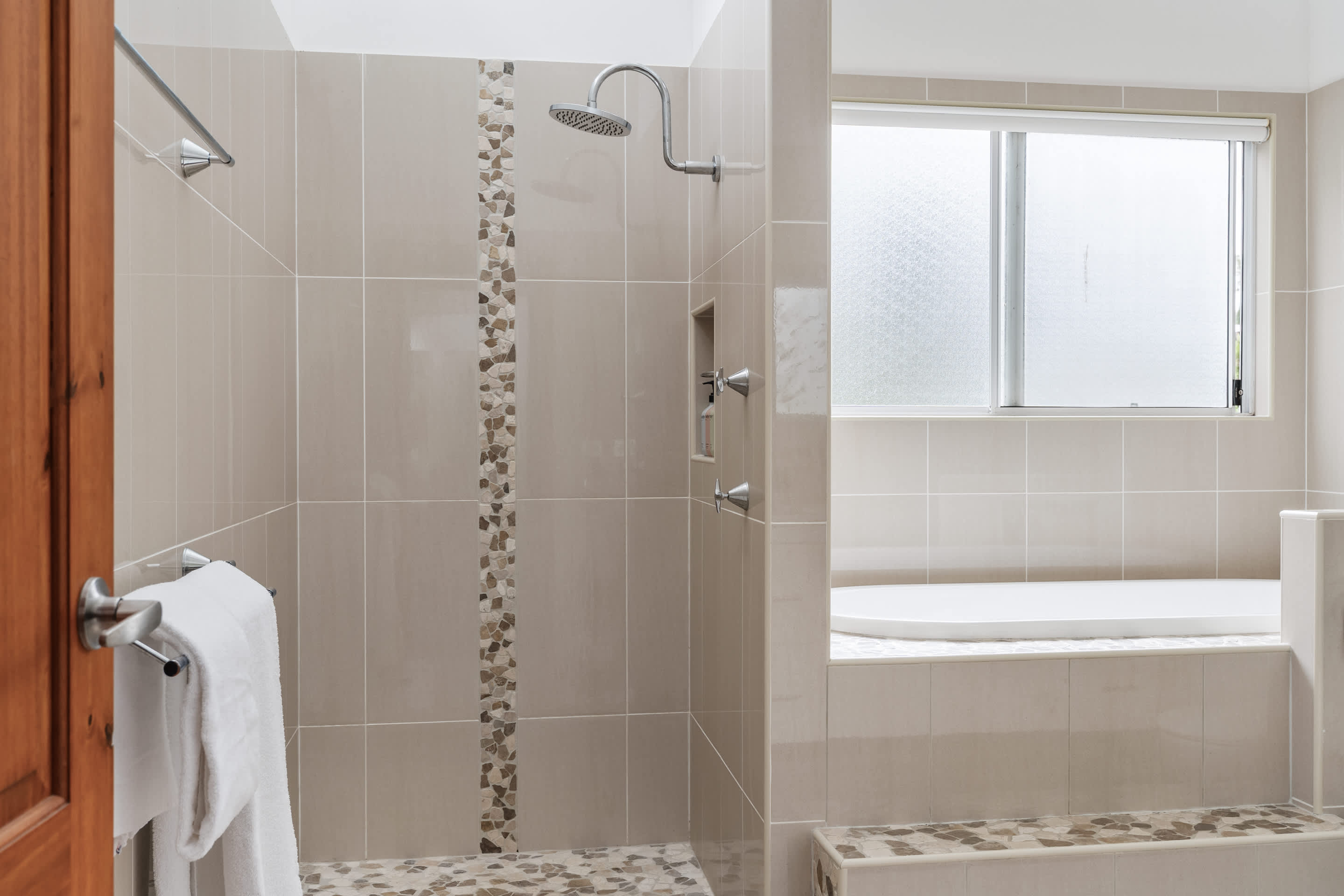 Bathroom 2: Shower, Raised Bath, Toilet, Vanity