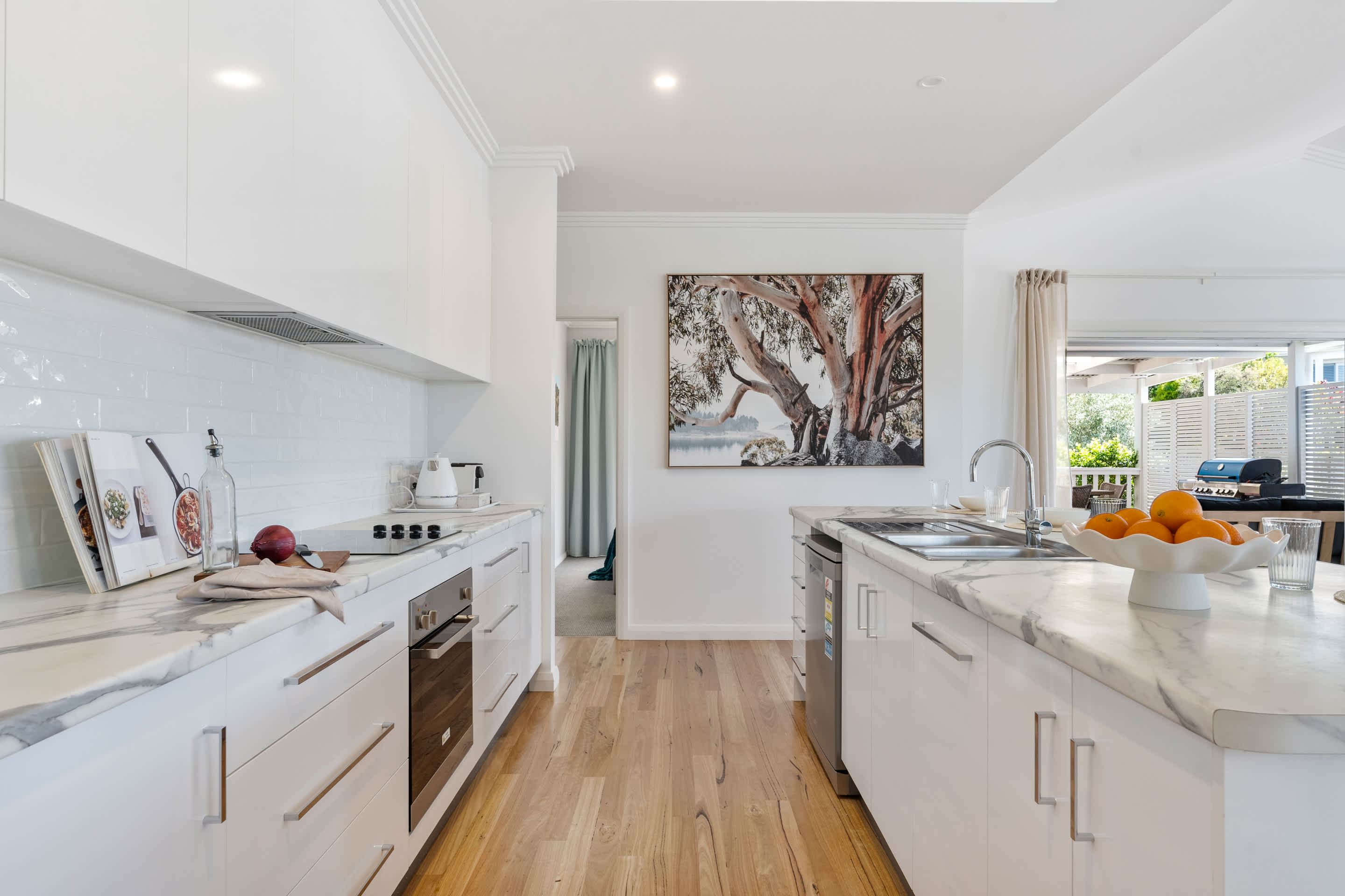The fully equipped kitchen boasts a butlers pantry a large island bench, dishwasher, and coffee machine. Relax in the spacious lounge room, or step onto the spacious deck in the fully fenced yard to enjoy the BBQ and garden views. An internal laundry with a washer and dryer is also provided for your convenience.