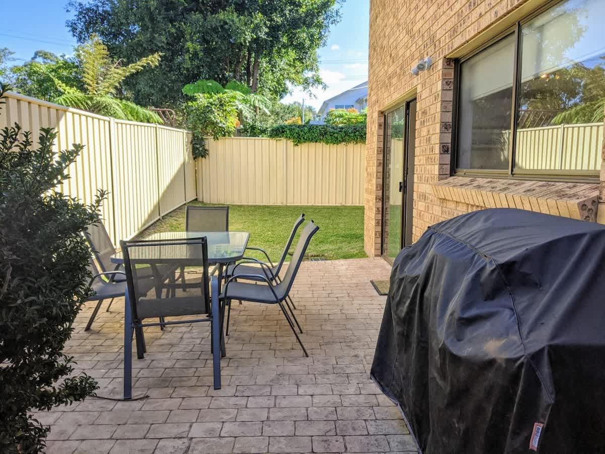 There is a gas BBQ in the private enclosed courtyard with outdoor table and chairs.
