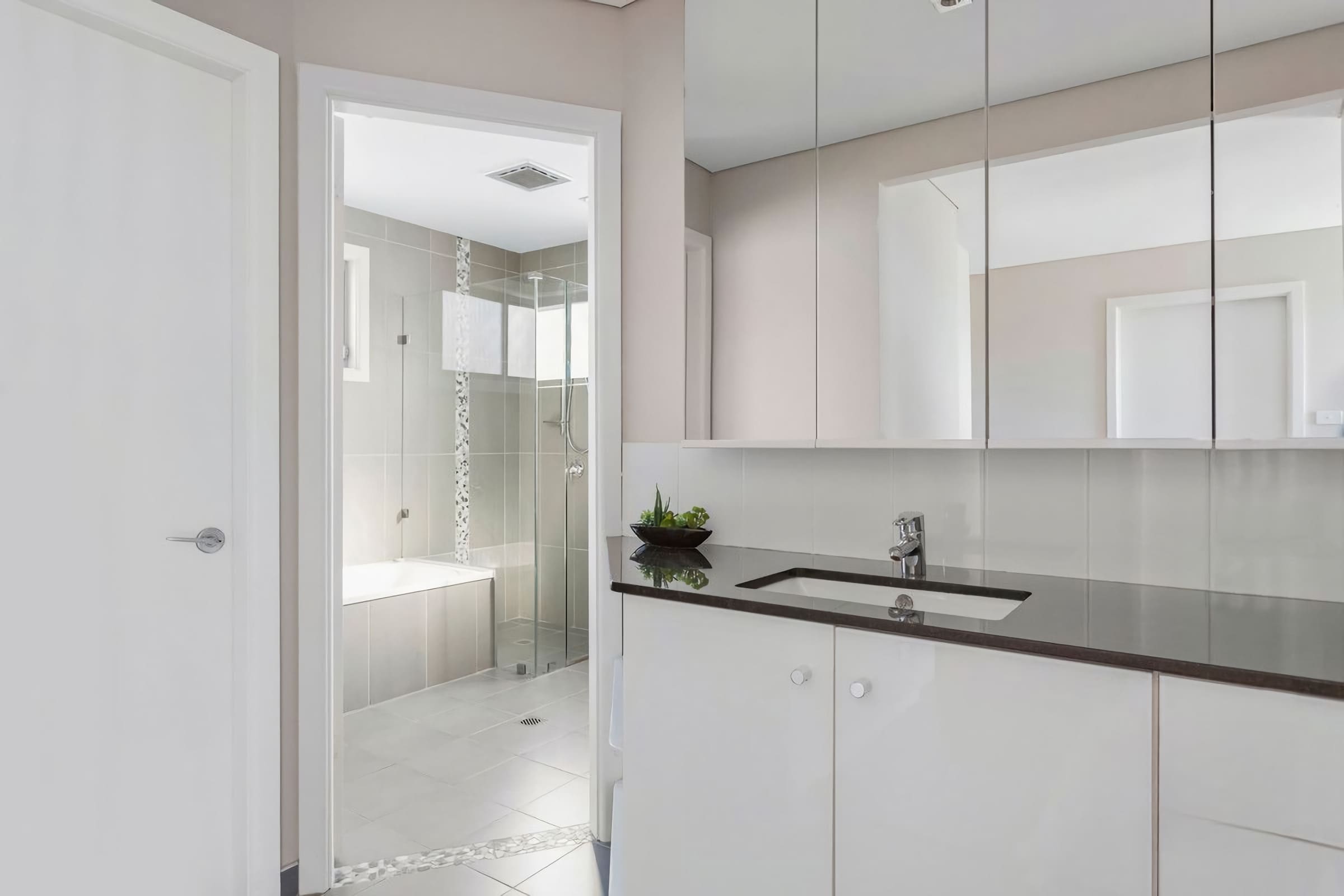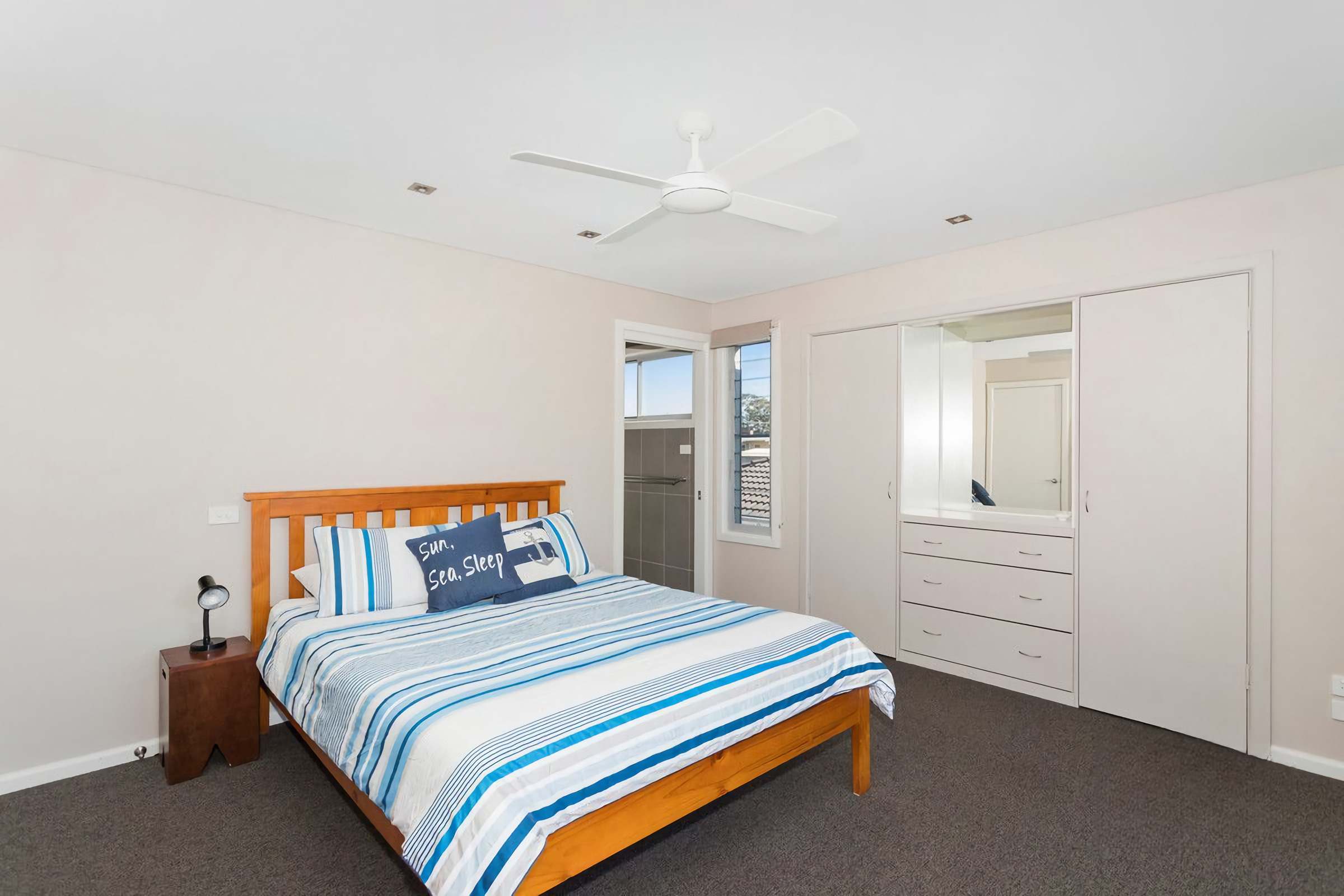 Bedroom 1 - queen sized bed, ensuite, ceiling fan, Built in robe and private deck with ocean views (upstairs)