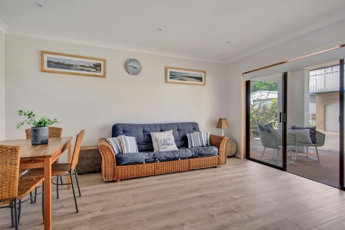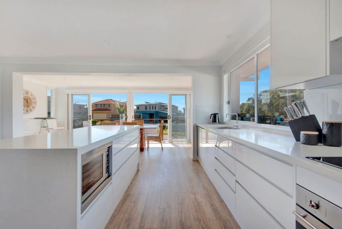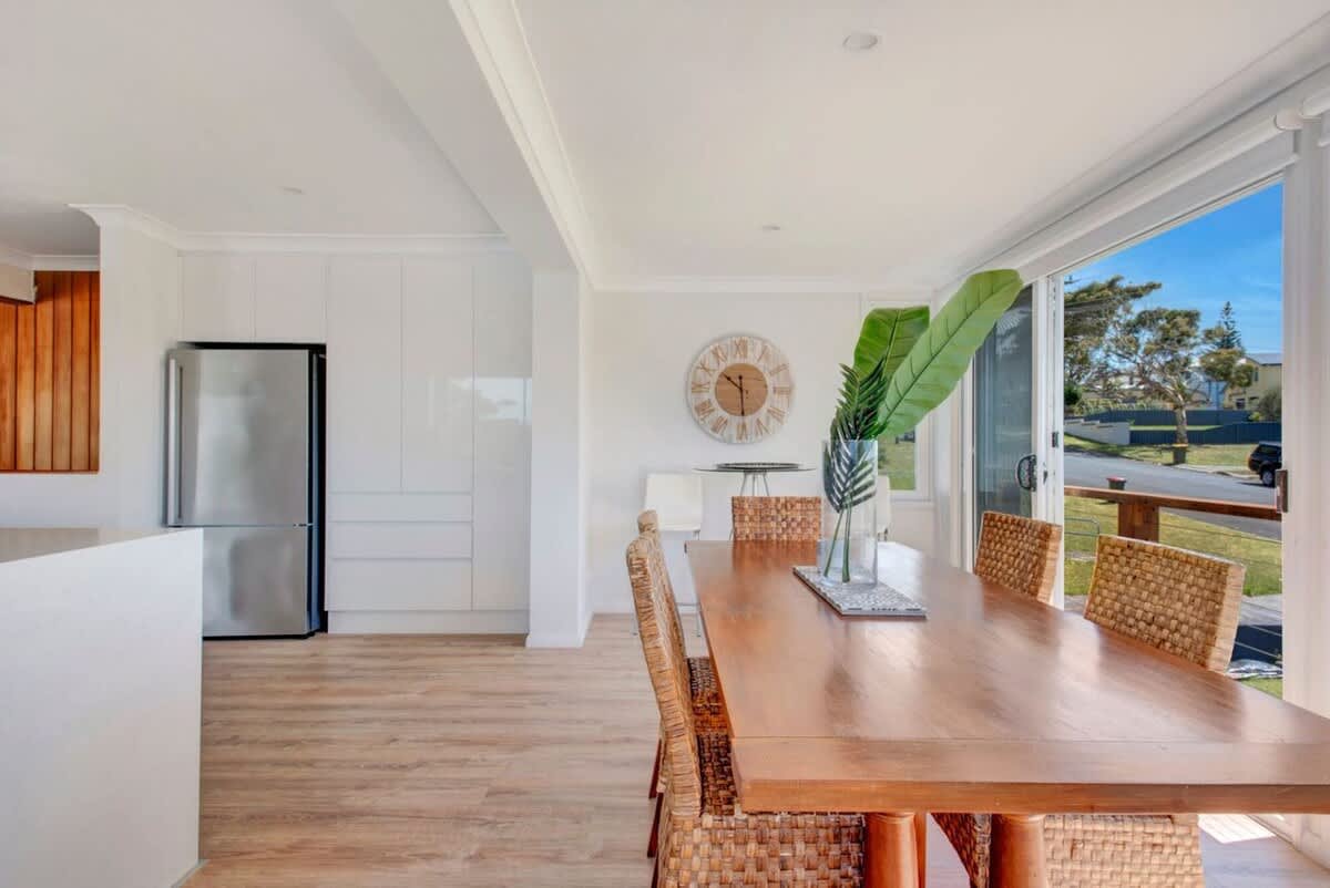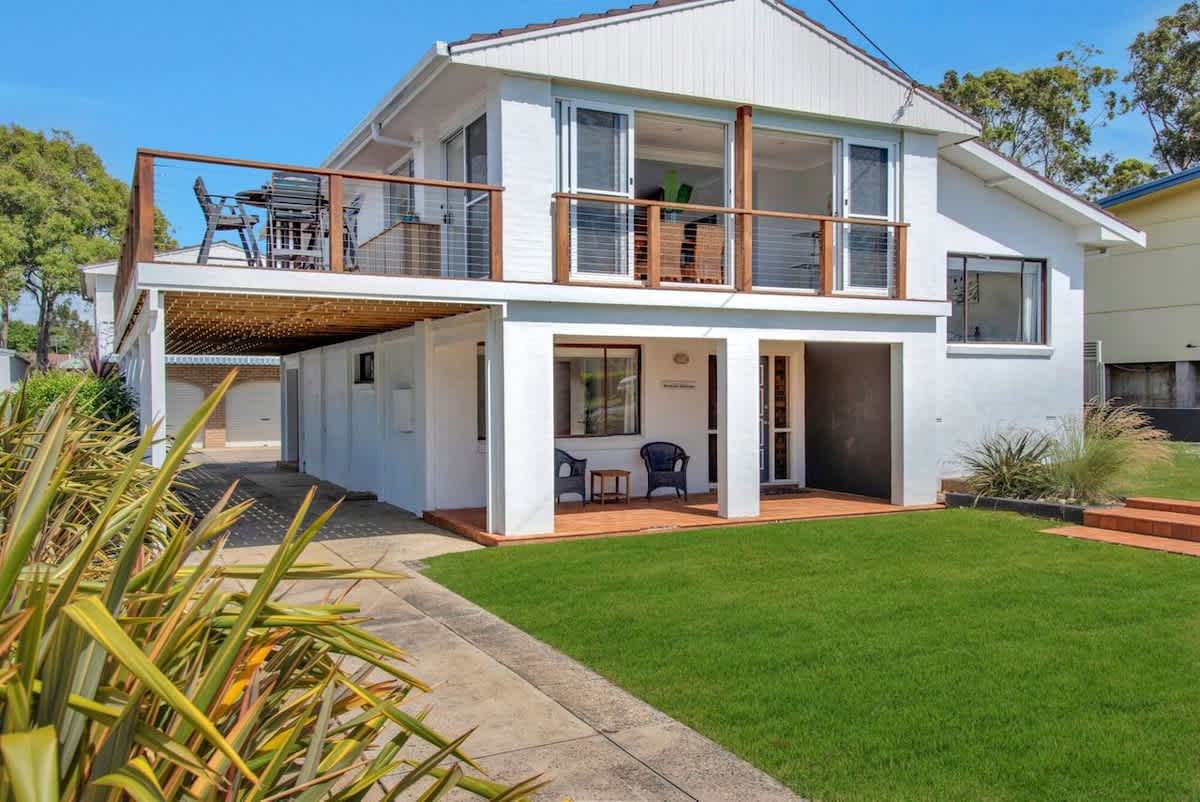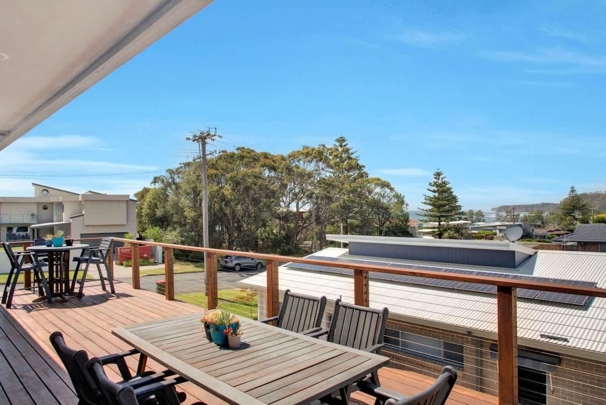 Beautifully refurbished family beach house located near Mollymook Beach. There is plenty of room for everyone with 2 lounge areas both with TV's and an additional kitchenette off the lounge area downstairs. The large entertaining deck at the side of the house provides plenty of room with outside furniture to entertain friends and family or just to laze around in the sun. The property has one BBQ on the patio and the back yard is fully fenced. There is plenty of off street parking for 4 cars (Please note the garage is not available). Only a short stroll across the road to Mollymook Beach, close to Mollymook Golf Club, Mollymook Bowling Club and Mollymook Shops. Plenty of everything for everyone to all enjoy whilst on holidays.