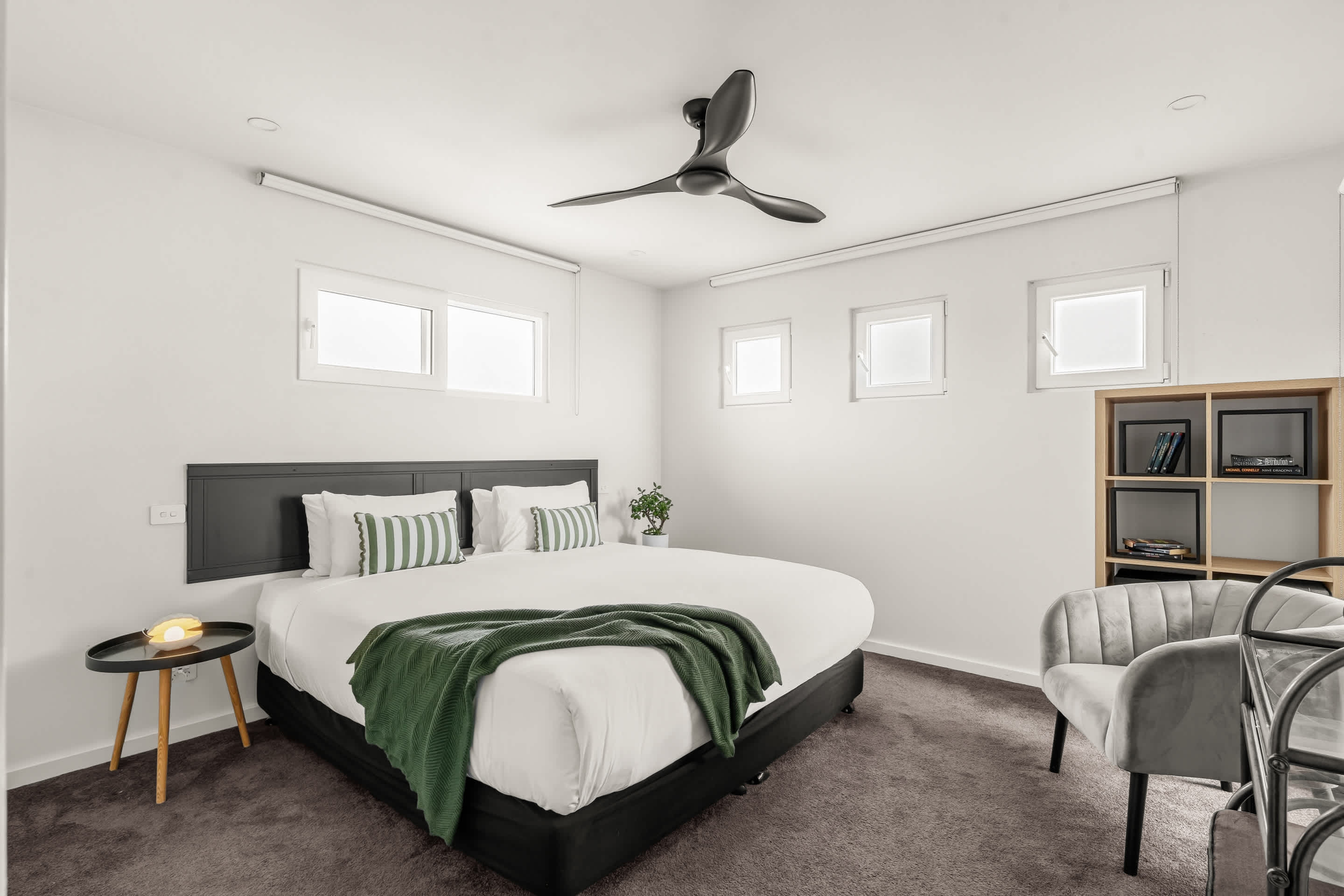 Bedroom 3: 1 Queen Bed, Television, Study Desk, Built In Robe, Ceiling Fan