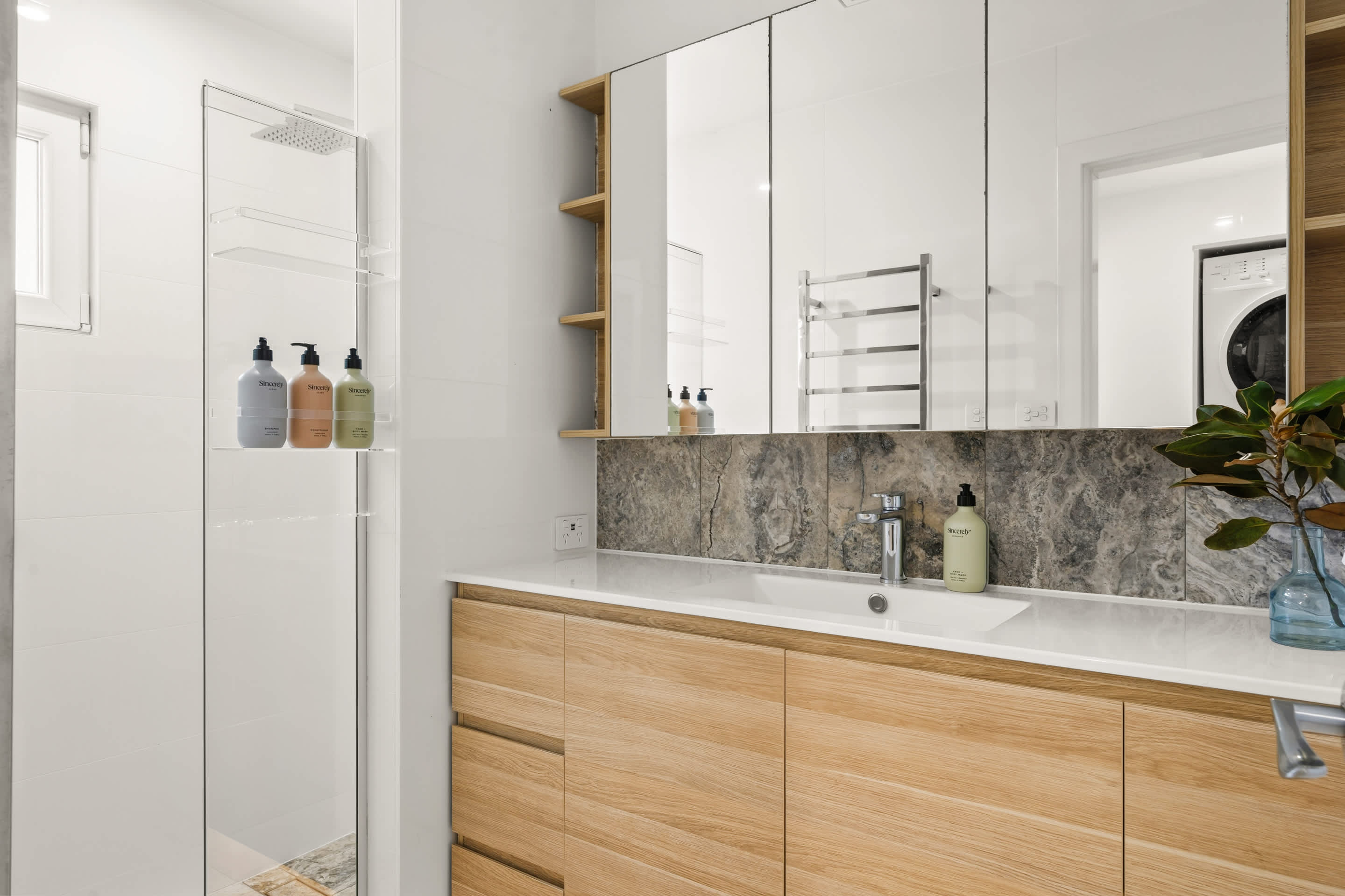 Additional features include internal laundry facilities with a washing machine and dryer, plus two off-street parking spaces.