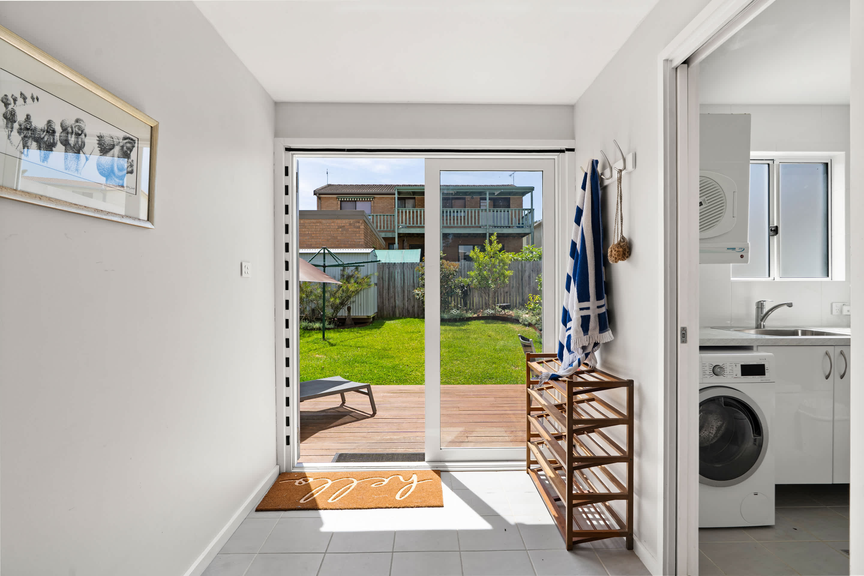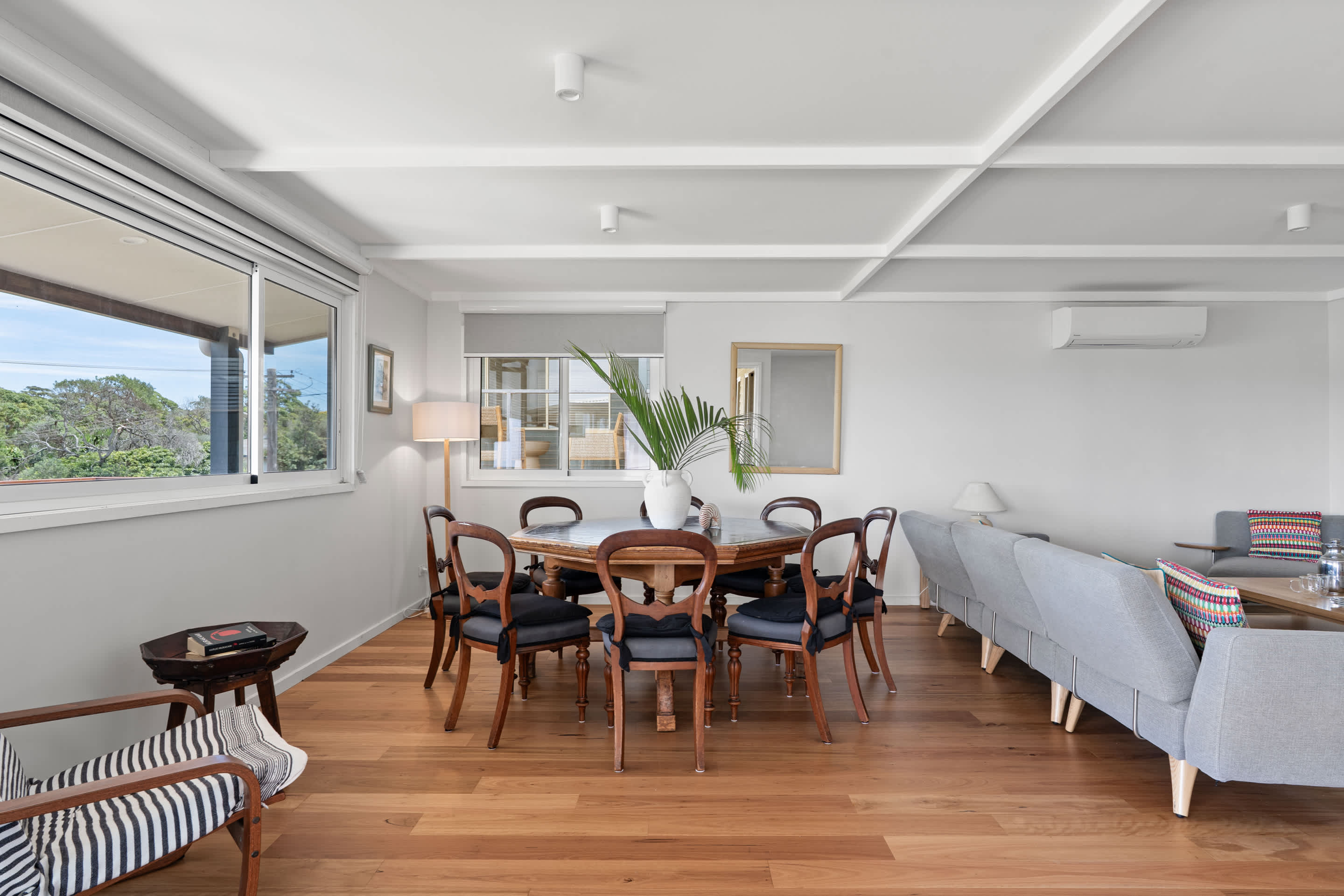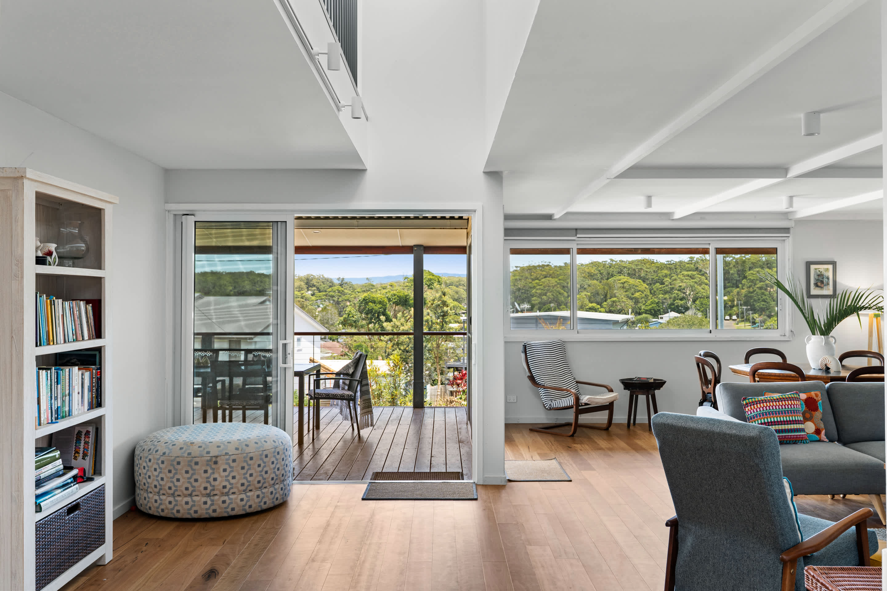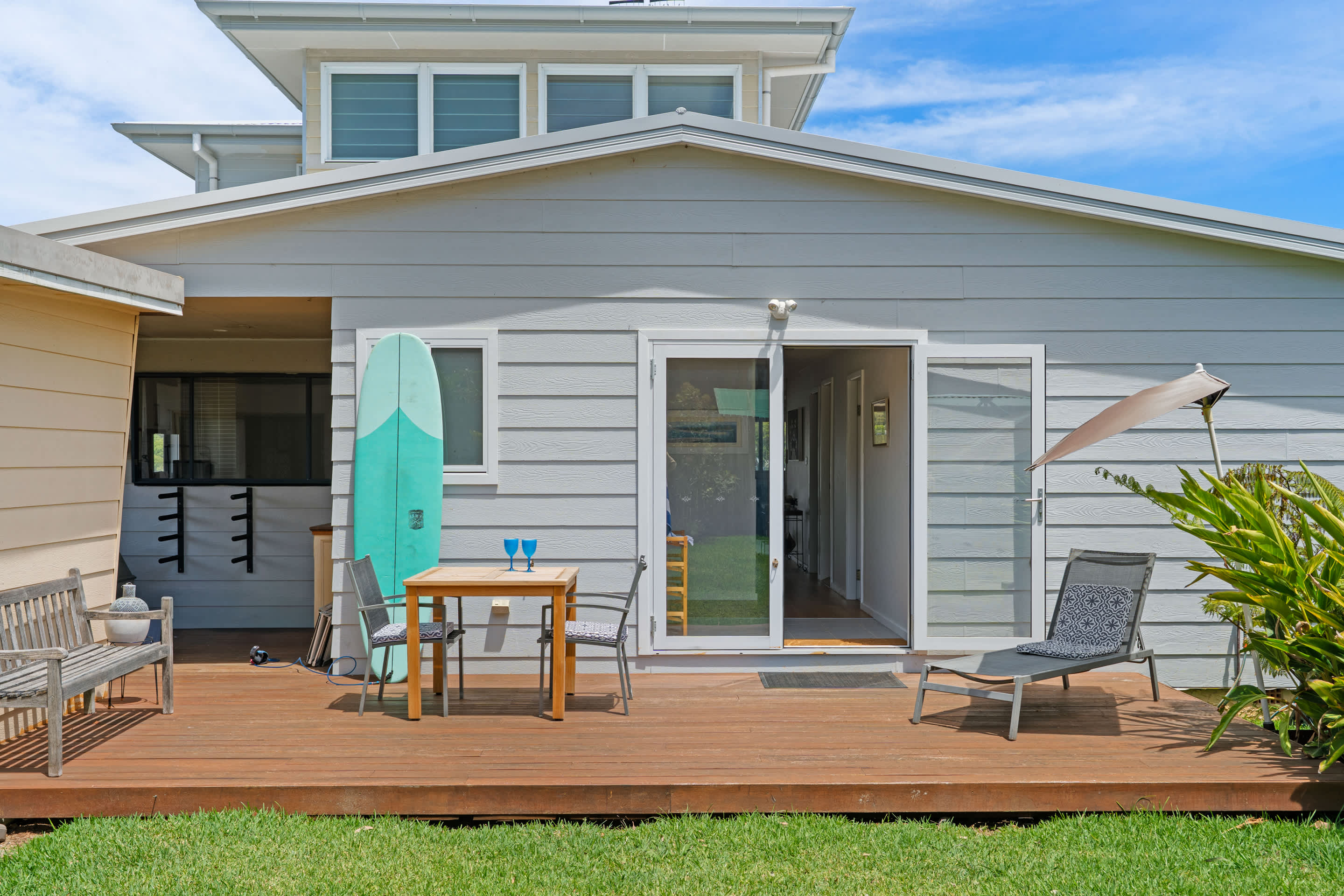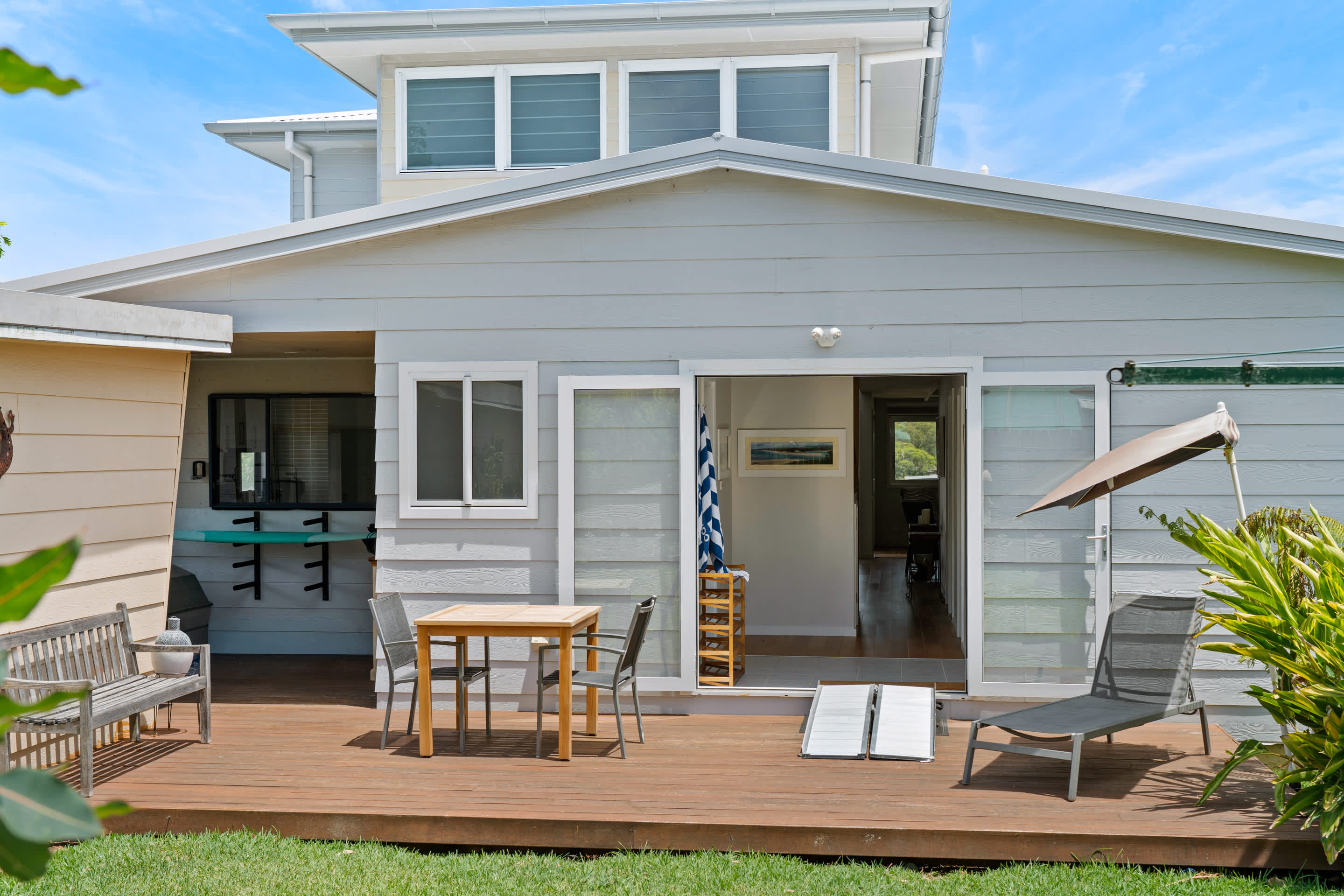 Step out onto the expansive front deck, the true highlight of the home. With a generous alfresco dining space, BBQ, and refreshing coastal breeze, it’s ideal for long lunches or sunset dinners. After a day at the beach or exploring the local area, the outdoor shower provides the perfect way to refresh before settling in for the evening.