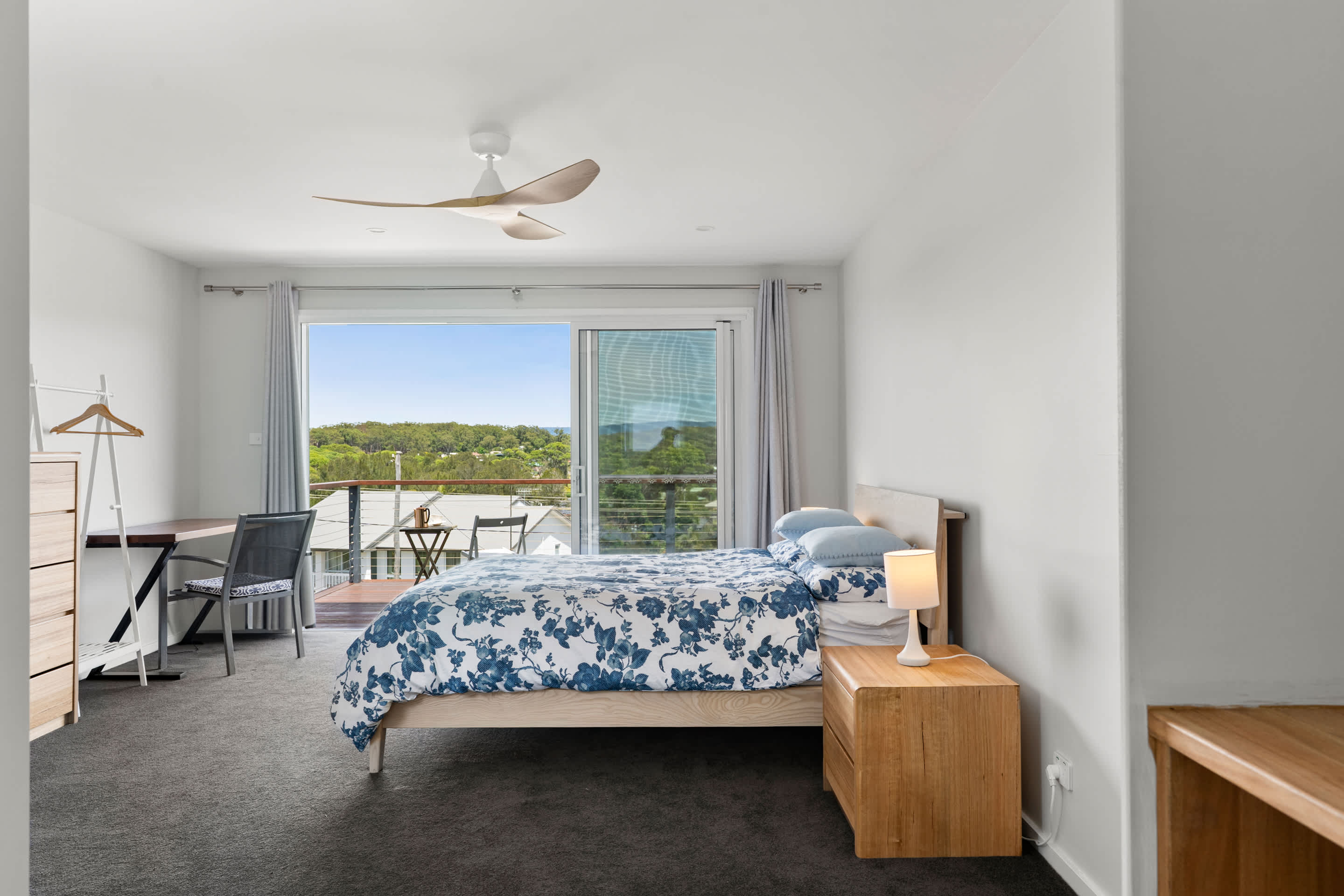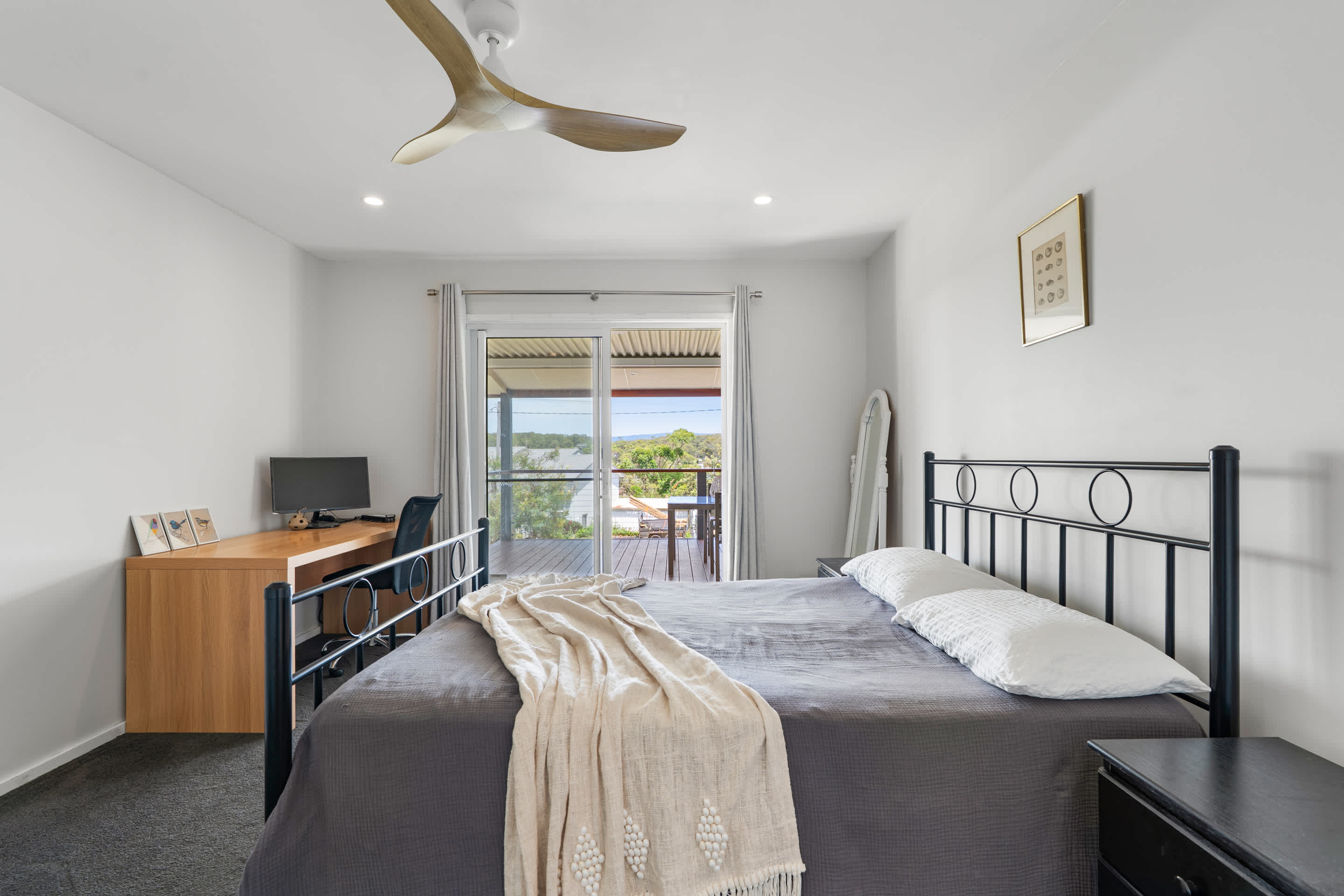 Bedroom 2 : Queen, Study Desk, Balcony Access, Built In Robe, Ceiling Fan