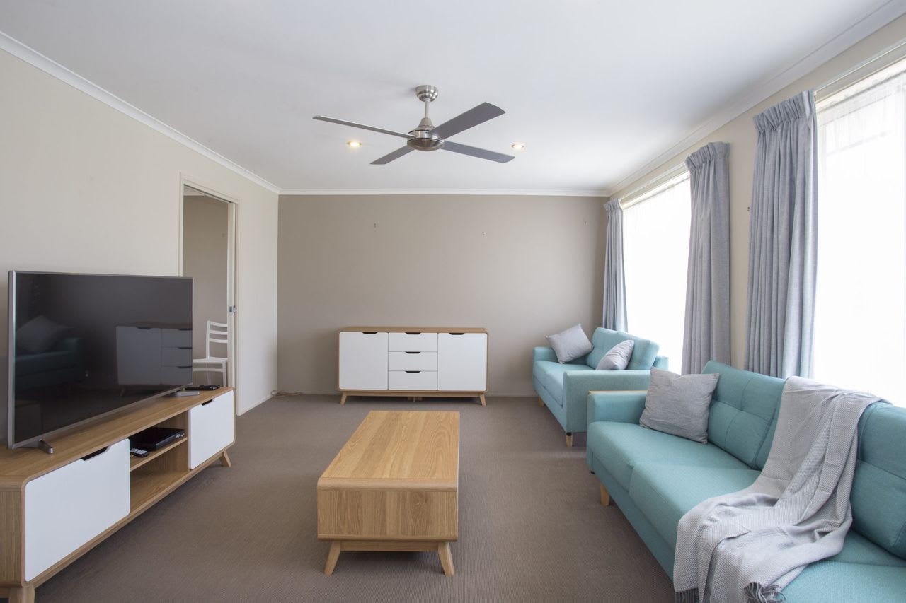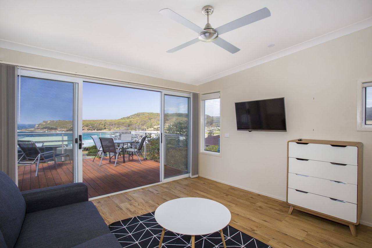 The main bedroom has a luxurious king size bed and ensuite. For the teenager's or extended family there is an upstairs bedroom/loft with a double sofa bed, 43 inch Flat Screen TV and private deck which offers amazing ocean views, the perfect place to gather and enjoy your morning coffee. The living room has a 55 inch flat screen TV and dining/kitchen area has a 32 inch flat screen TV both include reverse cycle airconditioning units for cooling in summer and heating in winter.