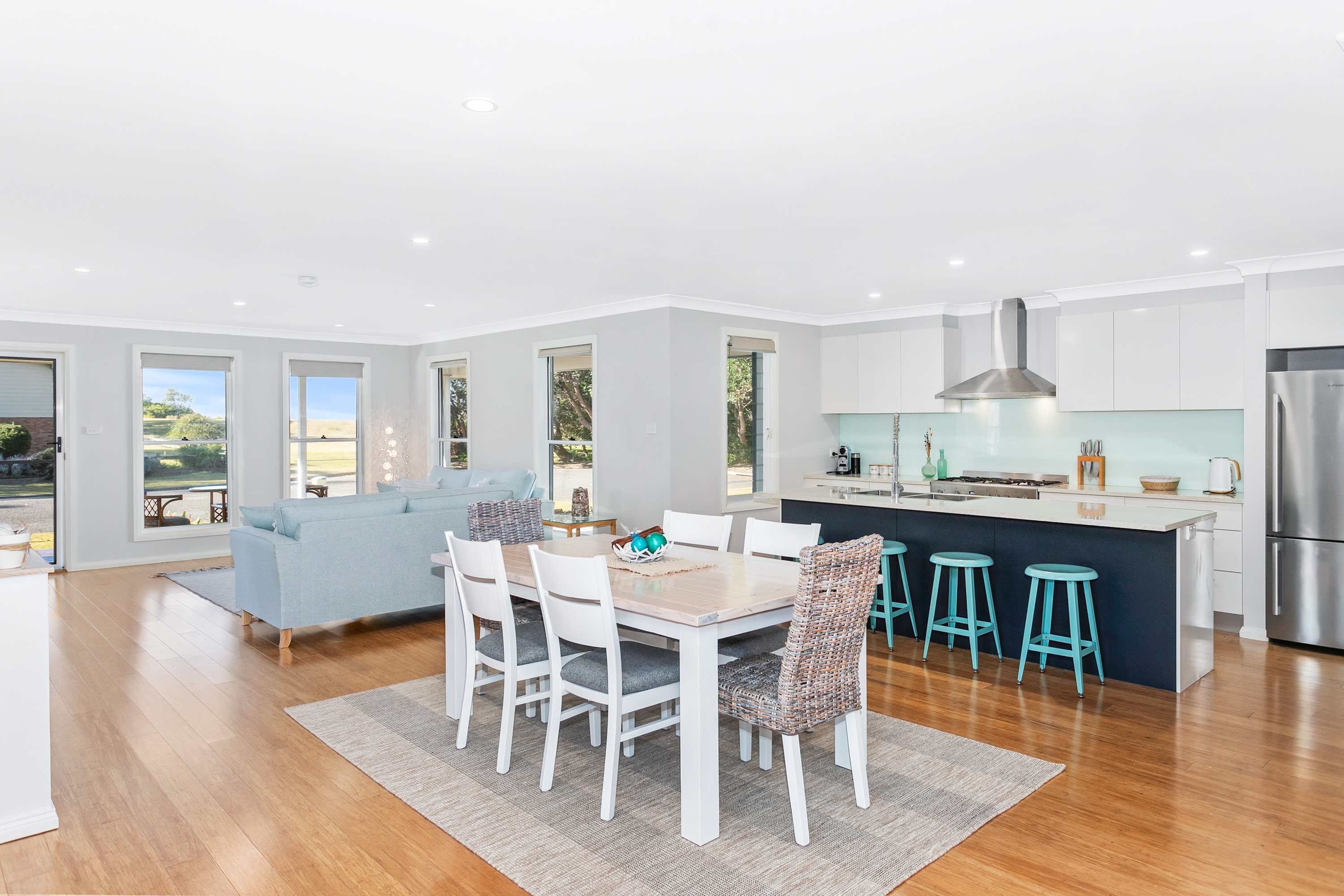 This Coastal Chic home screams relaxation, lazy beach days and beautiful summer nights BBQing up a storm, it really is the perfect place for a family holiday or a sweet escape with that special someone. Situated directly across from the stunning Merry Beach on the South Coast of NSW, this exquisite property has everything you are looking for in a holiday home.