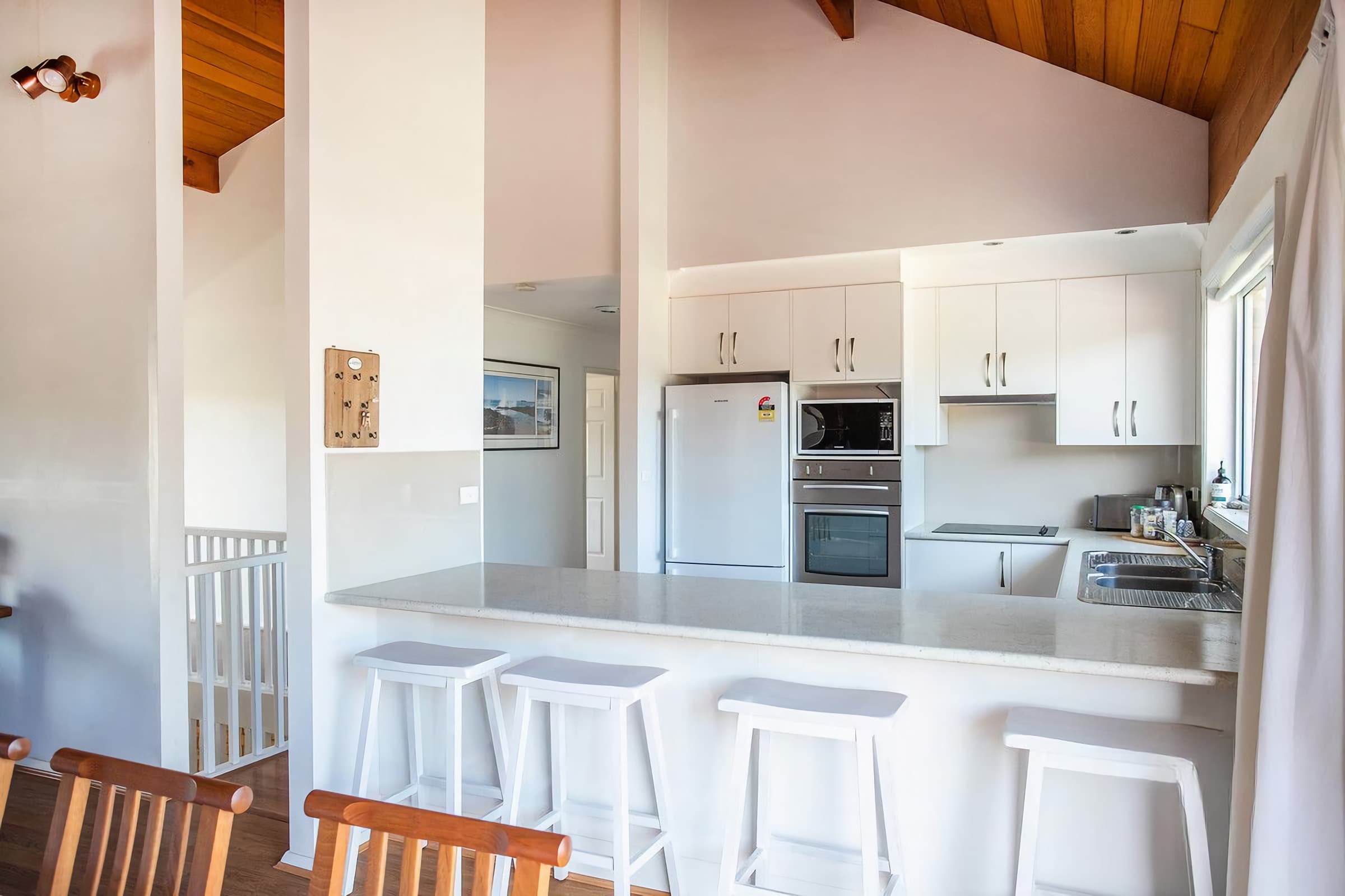This well equipped family holiday home comfortably accommodates up to 12 guests. With 3 queen rooms upstairs and a large bunk room downstairs, this property would be suitable for 2 families or the perfect friends catch up location.