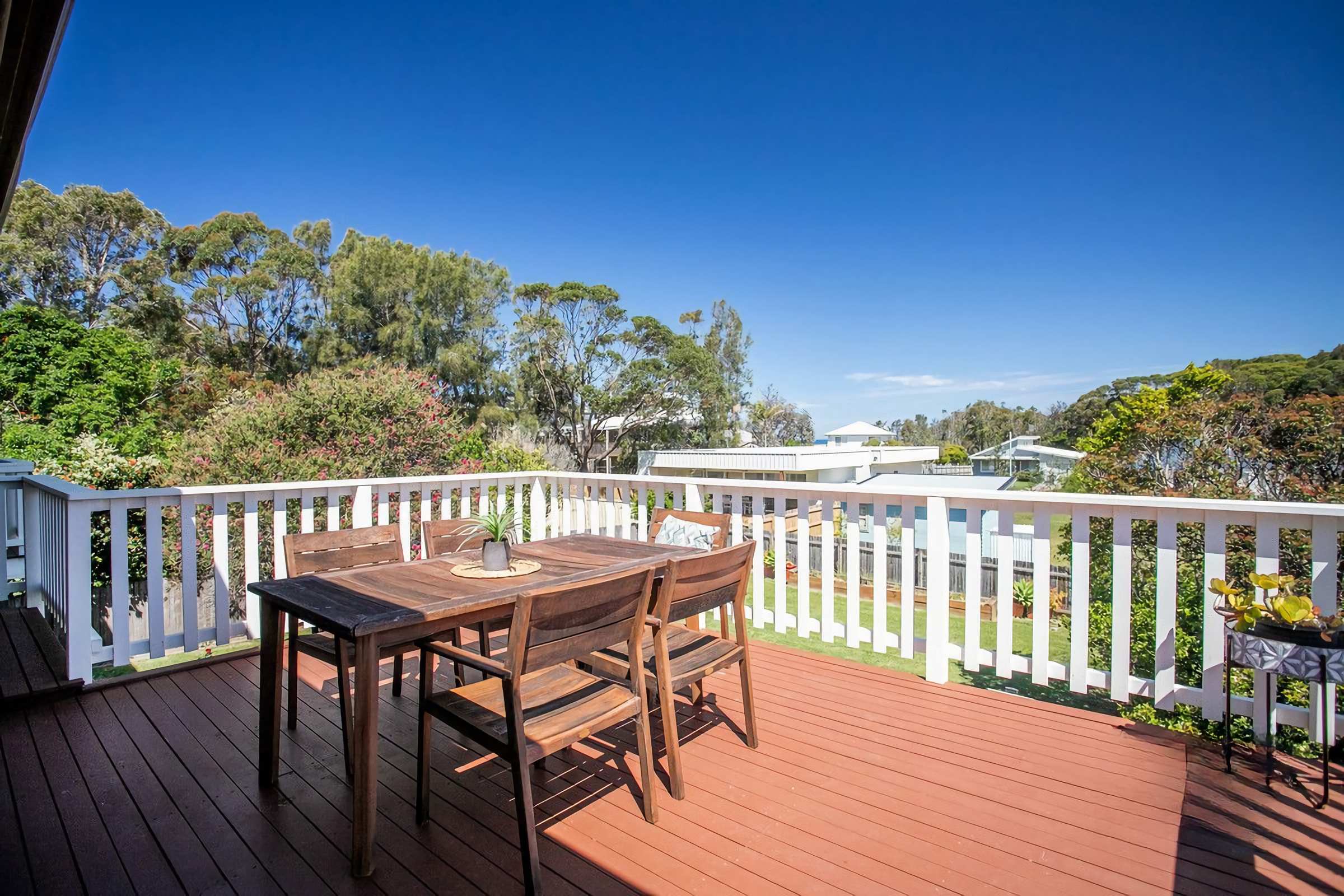 Offering two living spaces, Gas fireplace (upstairs), fully equipped kitchen, two bathrooms, a large fully fenced yard and multiple sun soaked decks to relax on and enjoy a BBQ, this property really would be the perfect holiday destination.