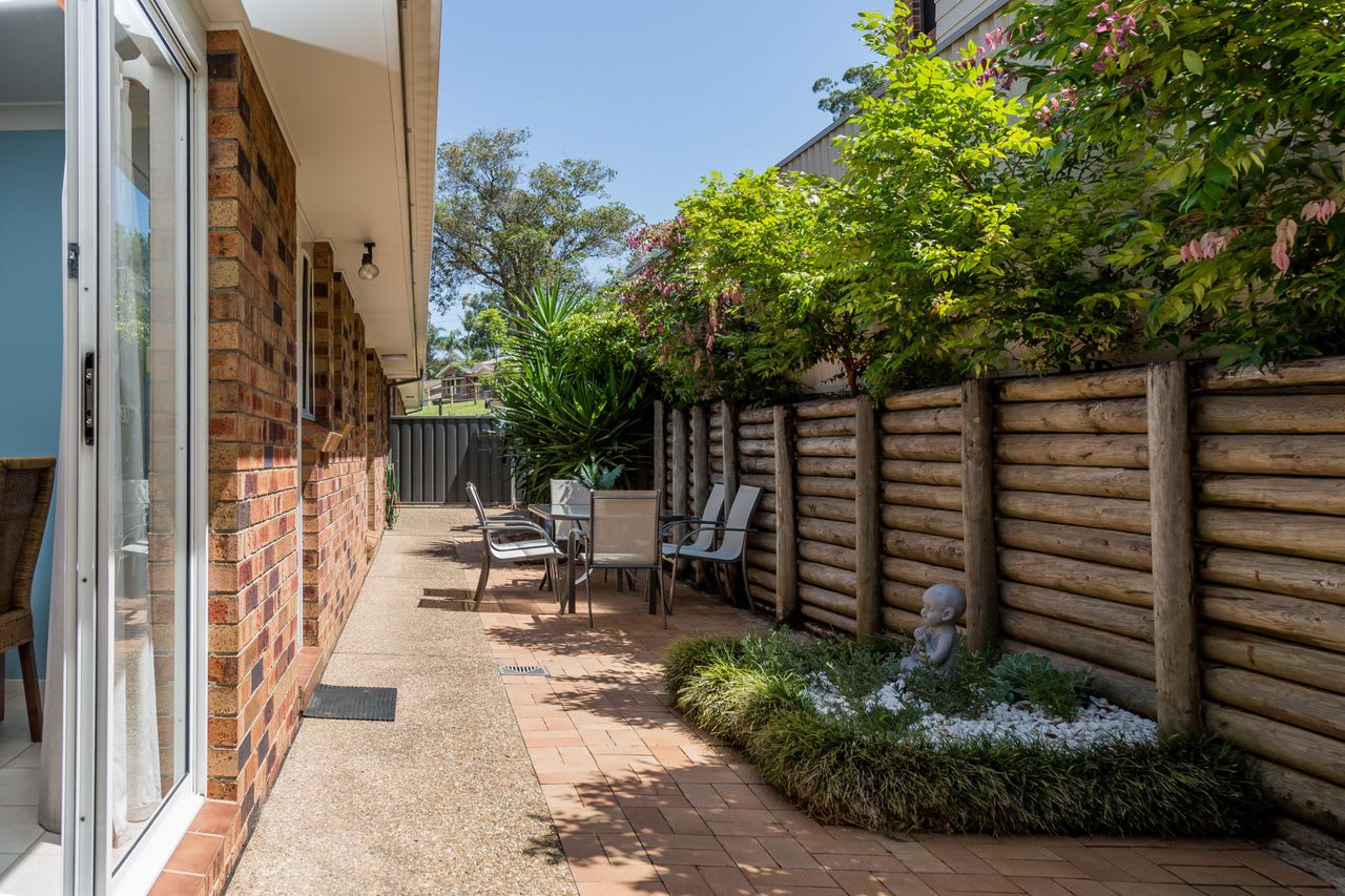 The ultra comfortable recliner lounge suite allows you relax in your home away from home, which is accompanied by downlights and a ceiling fan. The spacious and well-equipped kitchen is filled with loads of natural light and offers a breakfast bar and dishwasher (located adjacent in the laundry). Security doors allow the summer breeze through the villa and there is new split system air conditioning.