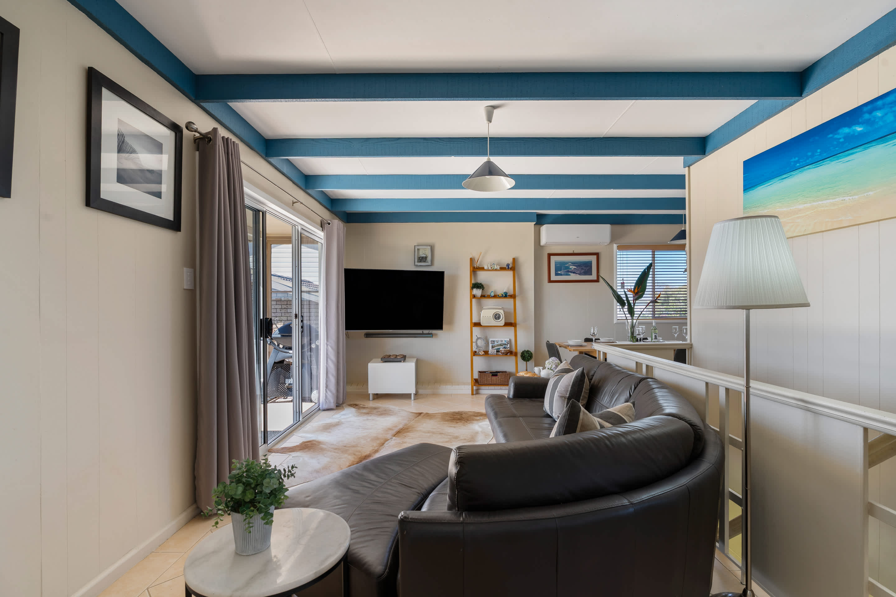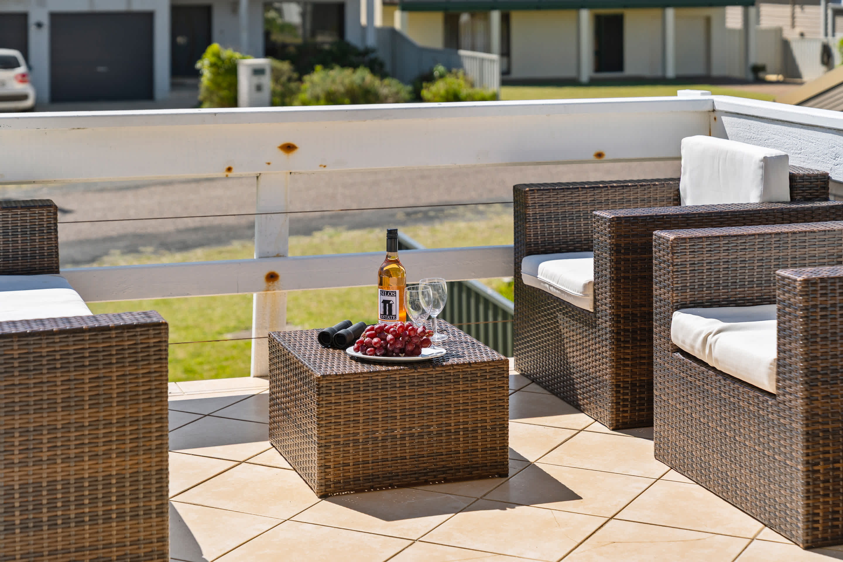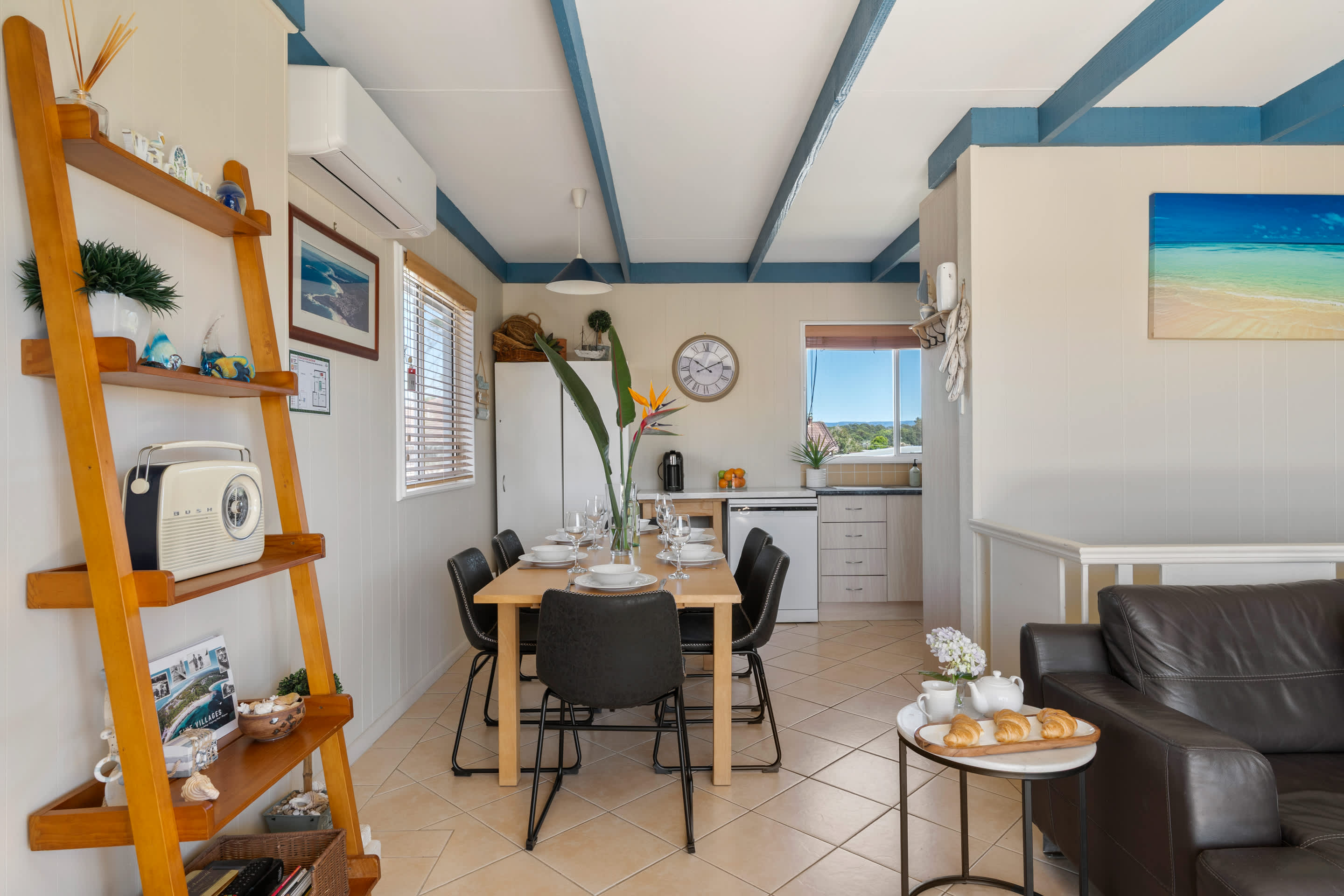 Set over two levels, this classic beach home features a tiled upper level balcony with BBQ, two comfortable lounge areas, and a well equipped kitchen with essential appliances. Downstairs, kids or teens will enjoy their own bunk room, while the upstairs bedrooms offer quiet relaxation with queen beds and ceiling fans. The layout makes it a great option for families with kids.