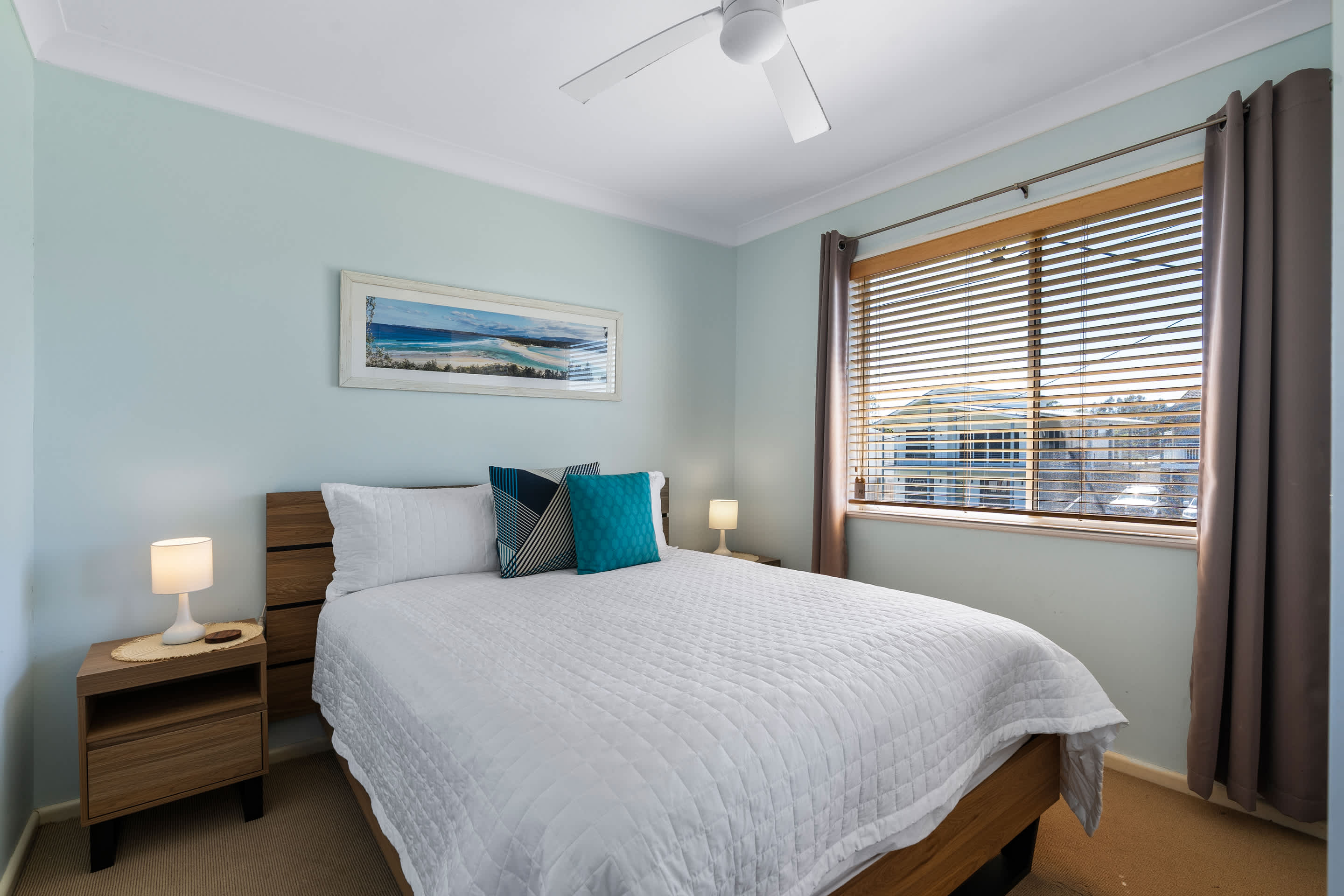 Bedroom 2 (Upstairs): Queen bed, built-in robe, ceiling fan
