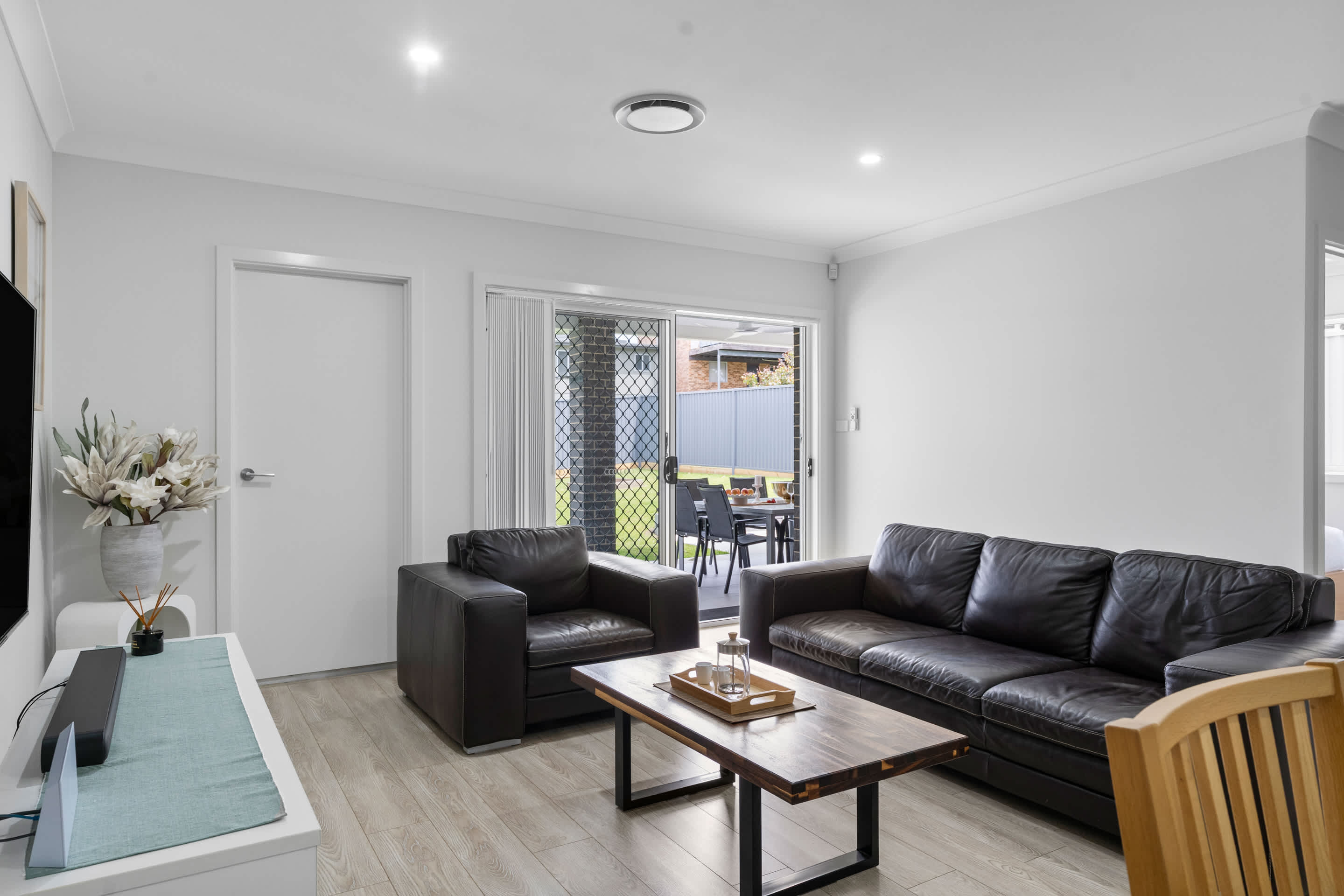A light-filled open-plan kitchen and lounge form the heart of the home, complete with modern appliances, gas cooking, and seamless flow to a covered patio—perfect for alfresco dining. A secure fenced yard adds peace of mind for families, while internal laundry facilities, air conditioning, and easy on-site parking ensure your stay remains comfortable and practical.