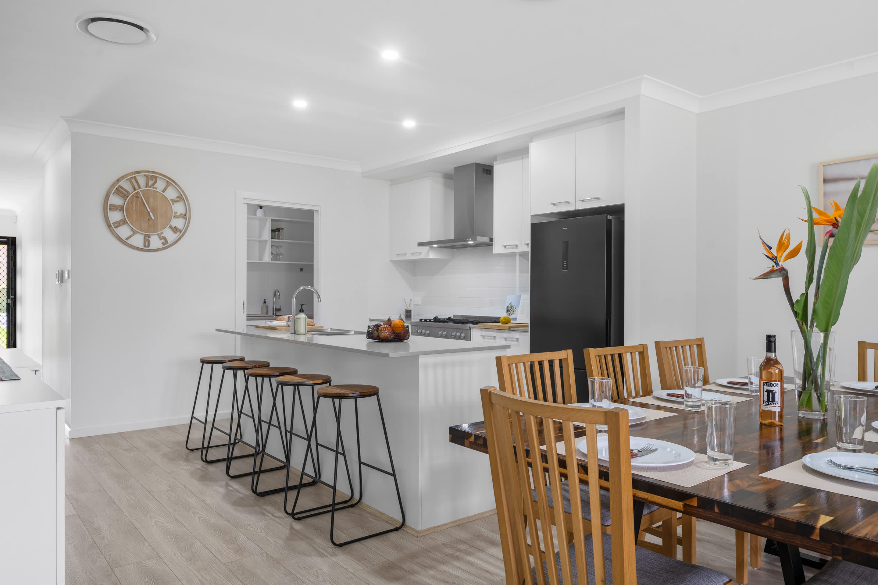 Across a single-level layout, four beautifully presented queen bedrooms provide peaceful retreats for up to eight guests, each fitted with quiet ceiling fans and generous storage. The main suite enjoys additional privacy with its own ensuite, walk-in robe, and TV, while the main bathroom offers a shower, bath, vanity, and toilet for convenient shared use.