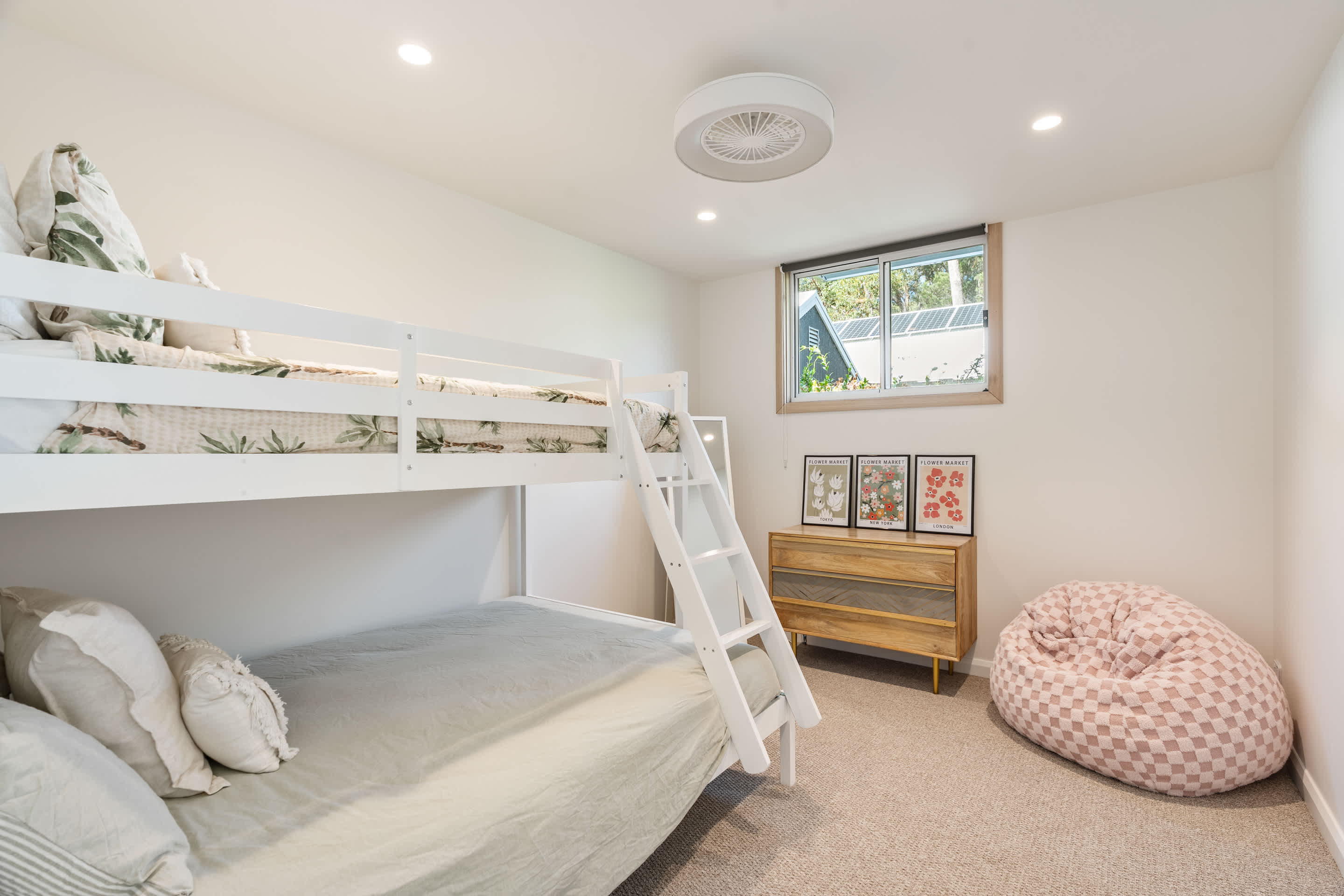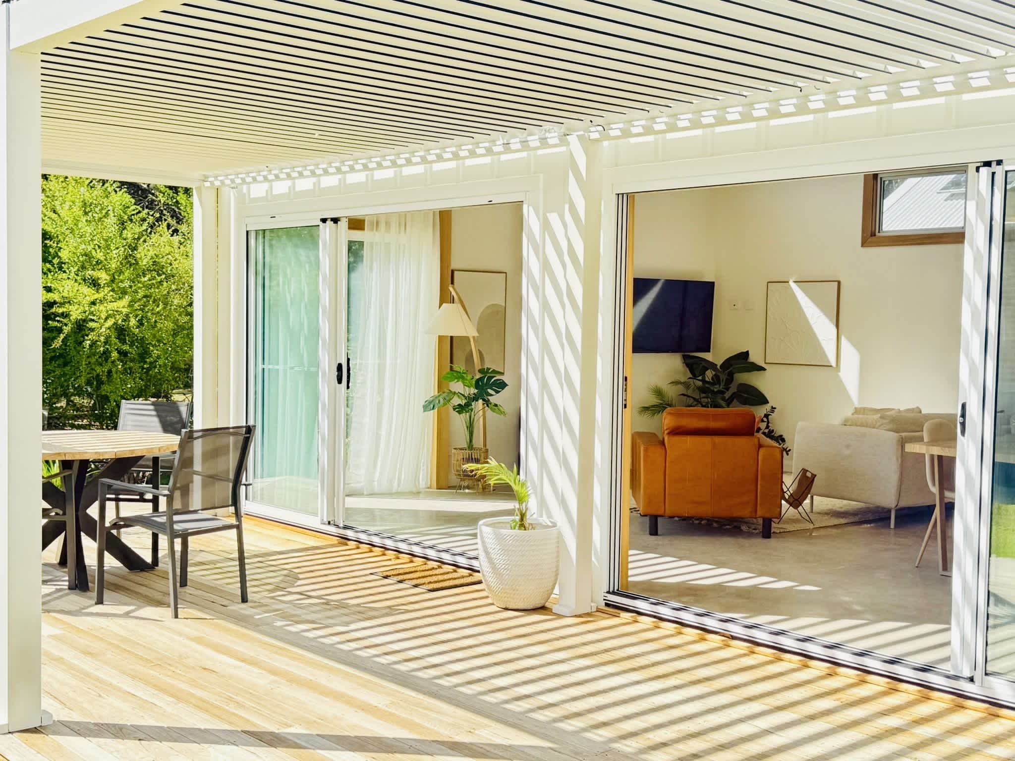 With two bedrooms (one featuring a queen bed and the other a double-over-single bunk bed), plus two modern bathrooms, and a cozy loft accessed via a fold-away ladder; this property comfortably sleeps up to five guests. Whether you’re planning a romantic getaway or a fun-filled family holiday, this home is your ideal base. you’re planning a romantic getaway or a fun-filled family holiday, this home is your ideal base.