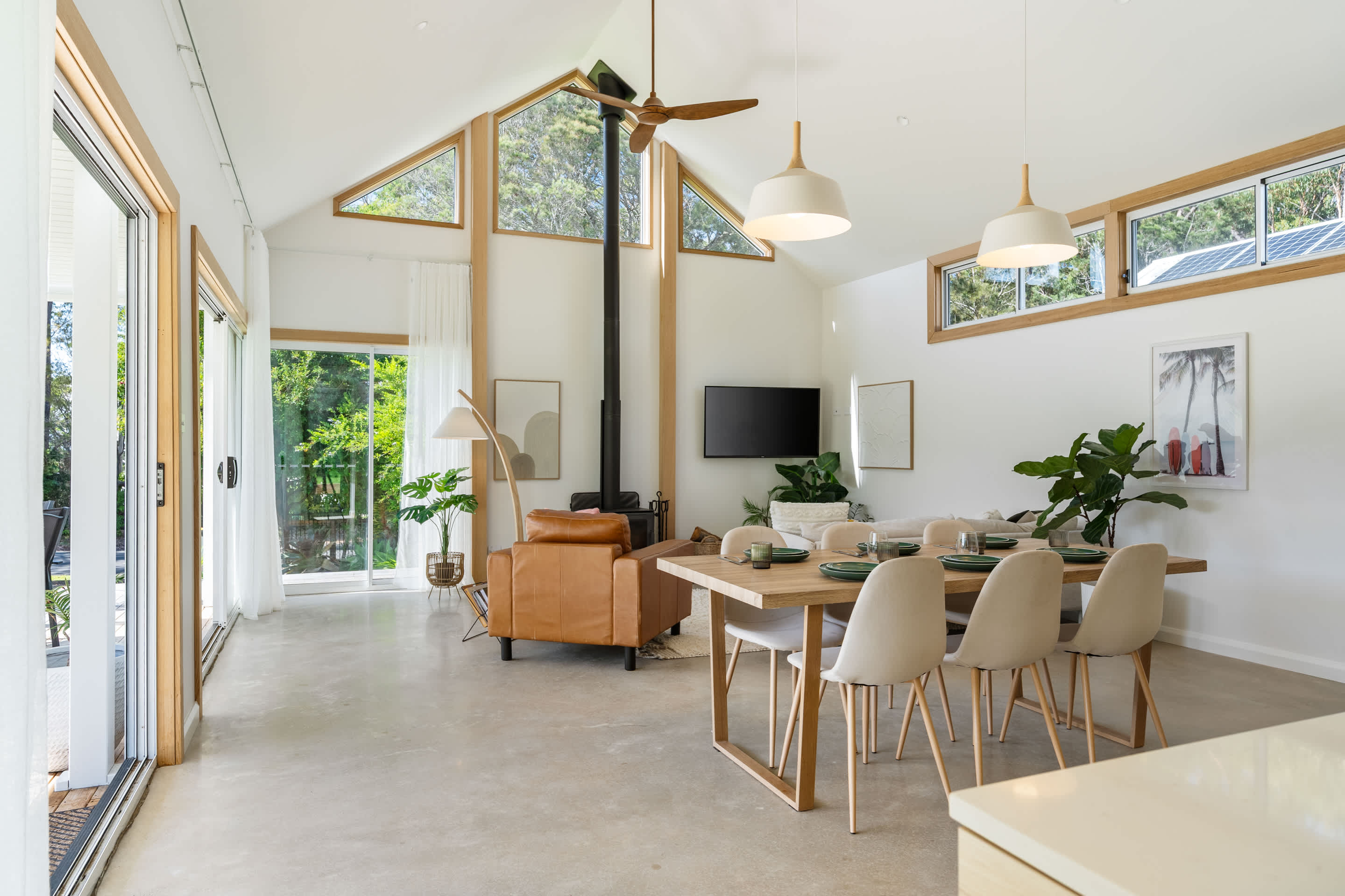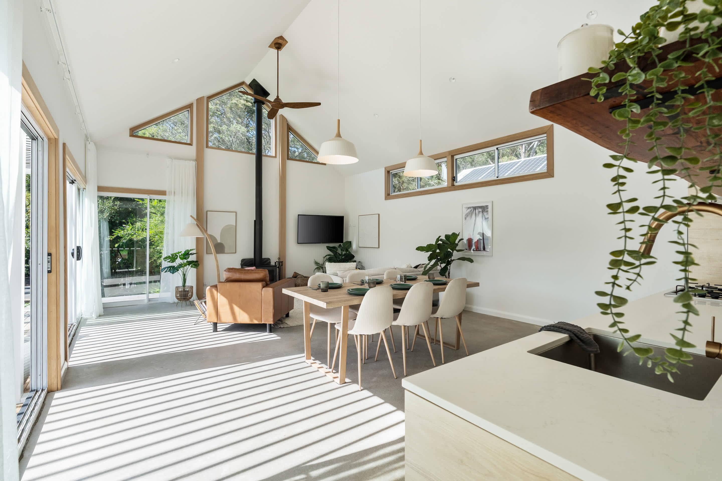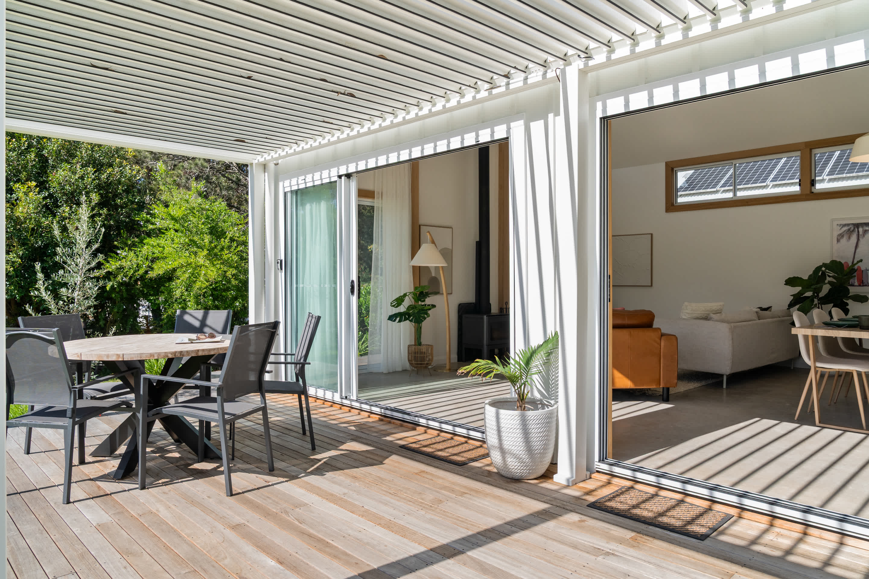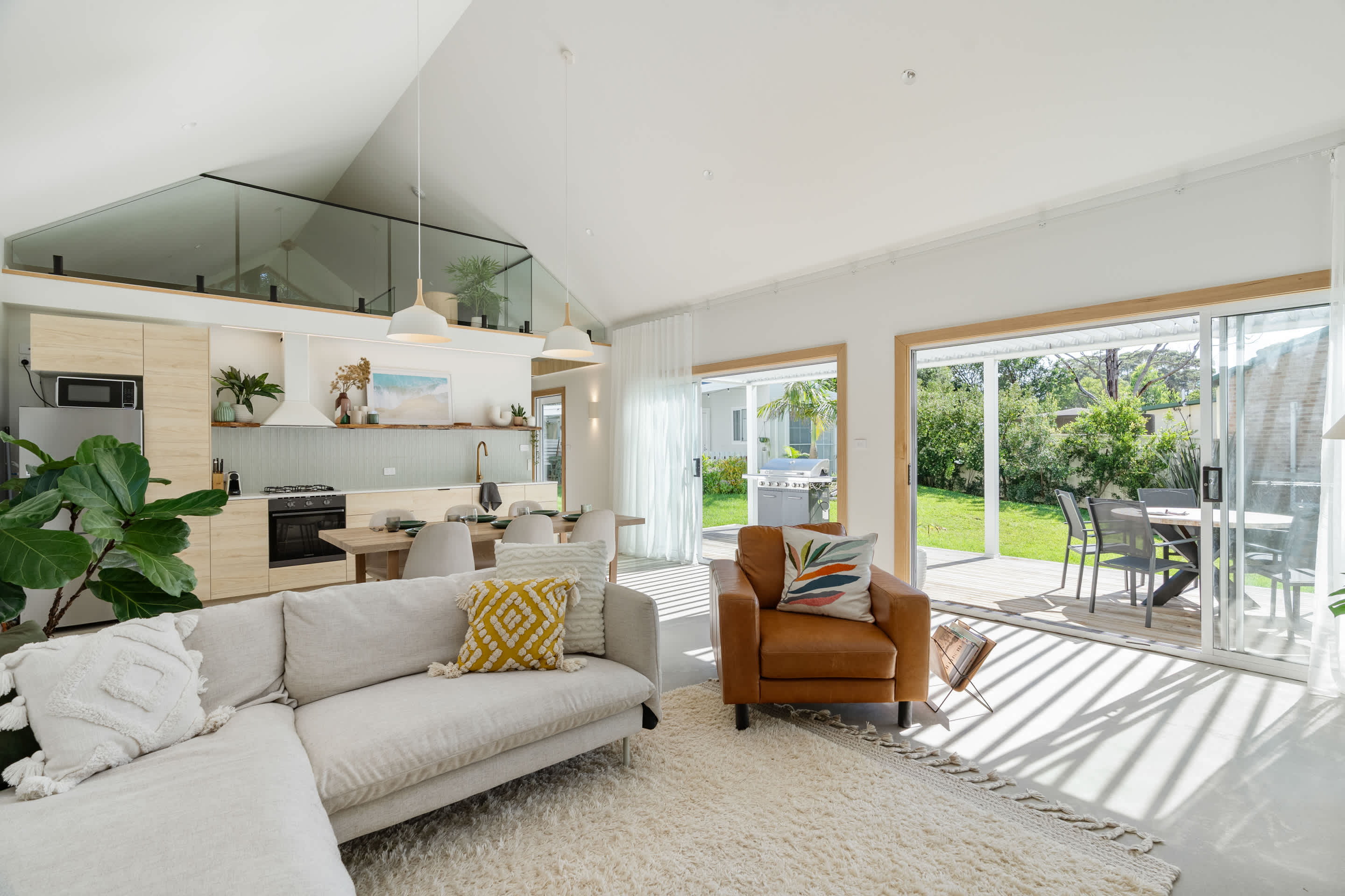 The open-plan kitchen, living, and dining area flows effortlessly onto a sun-drenched deck, with an electric louvered pergola where you’ll find a six-burner gas BBQ and a fully fenced yard—perfect for kids and pets to play safely. As the sun sets, gather around the fire pit under a canopy of stars for unforgettable evenings.