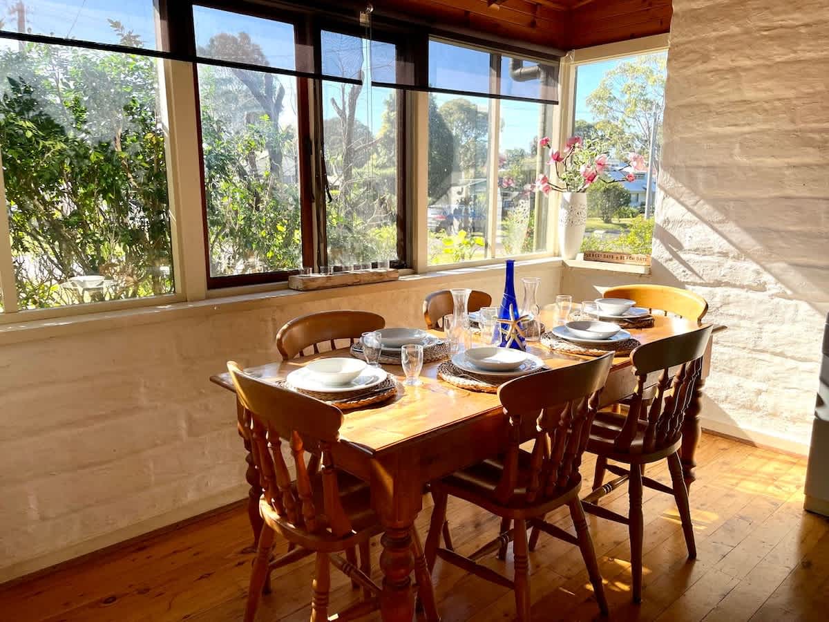 Holiday in this 2 storey, charming cottage style home located in popular Bawley Point. Walking distance to Gannet Beach, shops and cafe. Consists of 3 bedrooms; main with ensuite, cosy living area with open fire place, back deck and BBQ area with lovely tranquil leafy outlook.