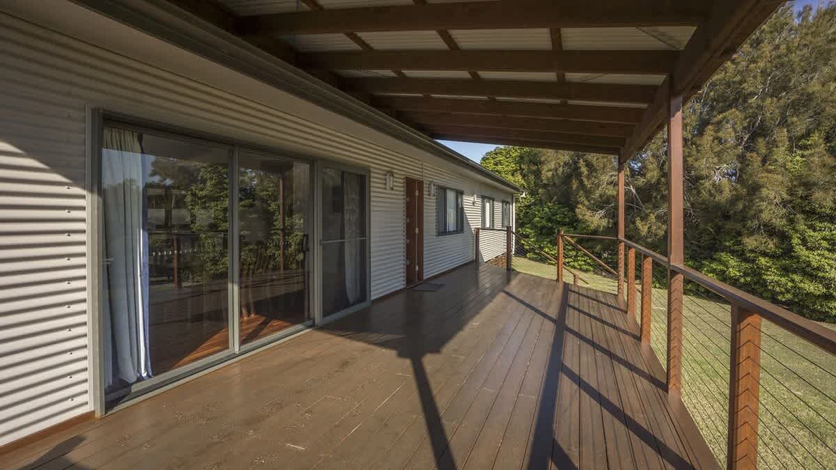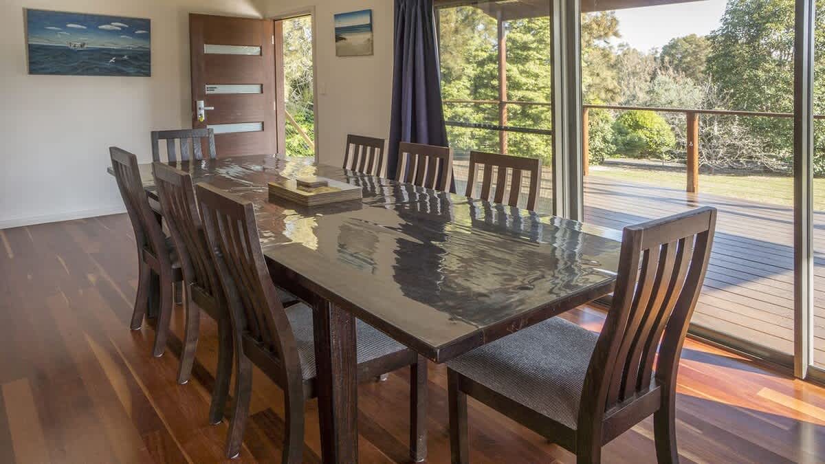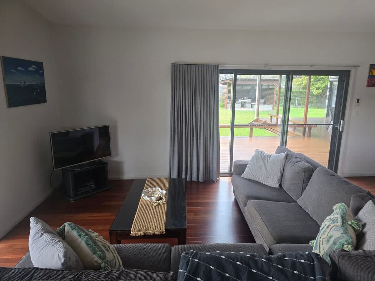 This immaculately presented home is located only minutes' walk to Murramarang Beach and to the local shops. With polished timber floors throughout, the open plan living area flows seamlessly onto the decks surrounding the house making it ideal for relaxation and entertaining. Spend your days out exploring or lazing on the beach, then head back home and rinse off in the outside shower before a nice relaxing soak in the freestanding bath. Cook up a BBQ and dine alfresco on the large deck while the kids run around on the extensive wide open grass area - it's just as you imagine your dream family holiday to be. In the cooler months, take advantage of firepit to stay outdoors in the evening or load up the combustion wood fireplace with firewood from the back shed and enjoy cosy nights in with the family.
