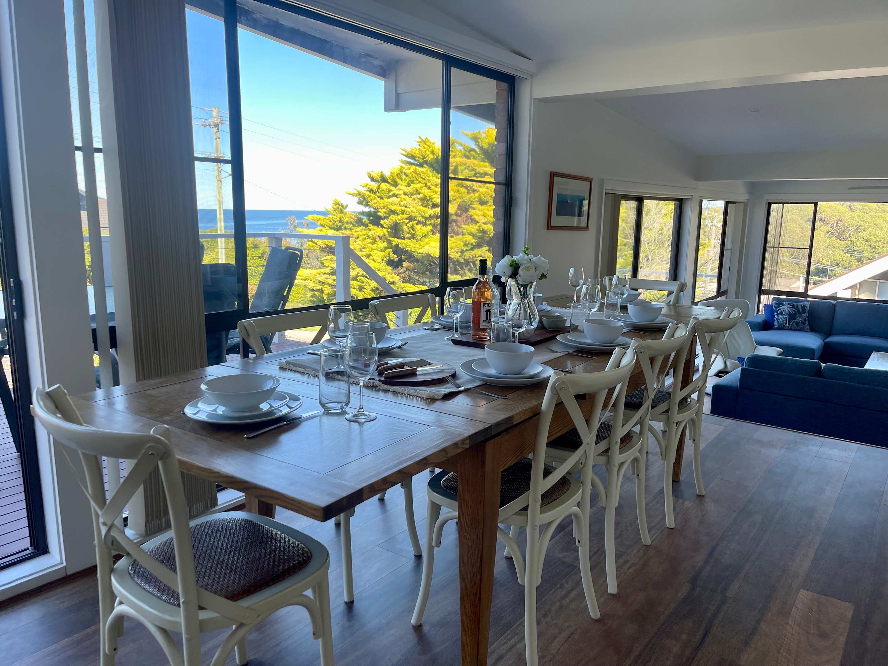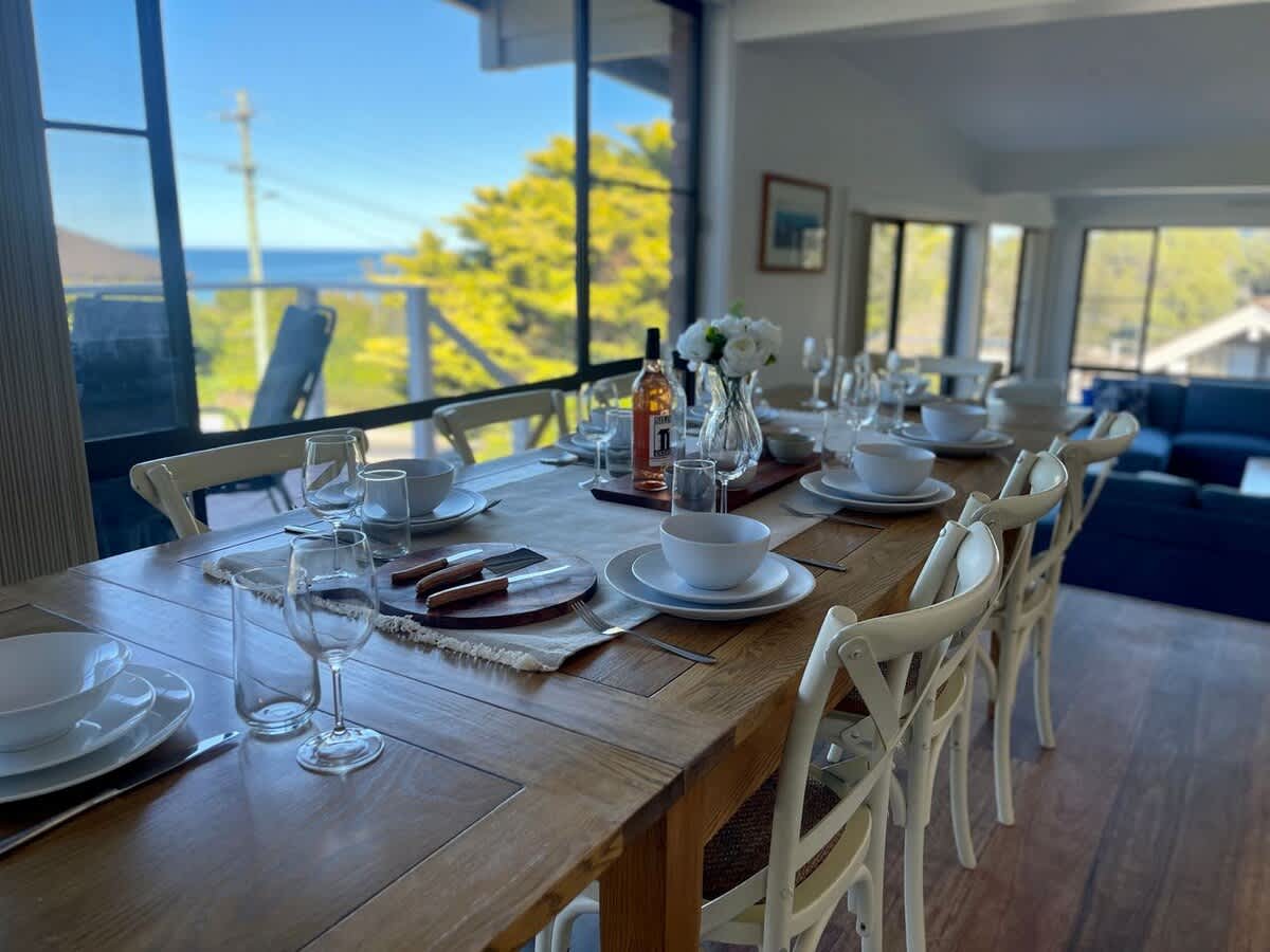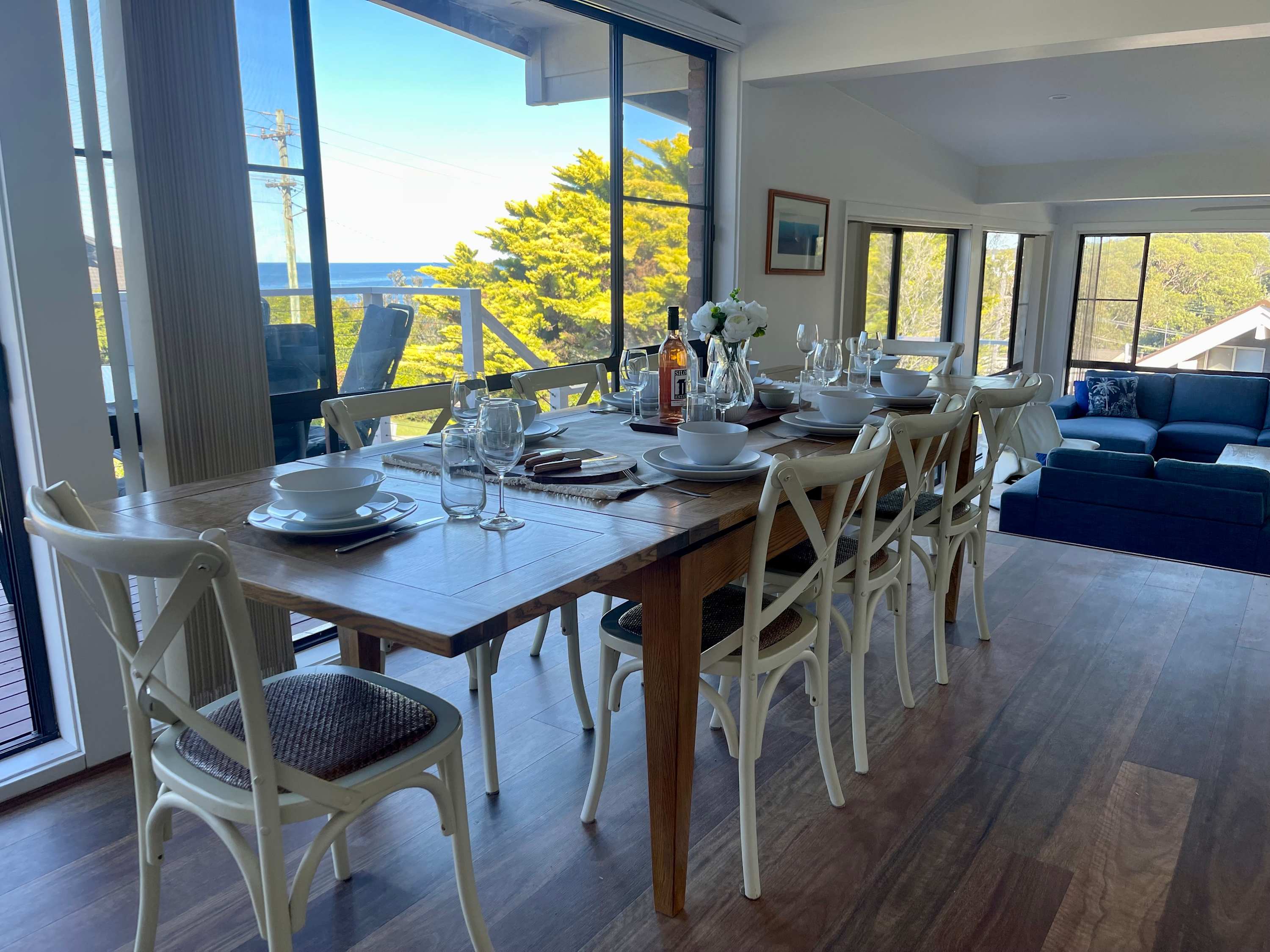 Situated at the north end of Mollymook Beach is this super-sized six-bedroom holiday home. Enjoy the beautiful ocean views from the deck and recently renovated upstairs living areas. Offering the flexibility of both upstairs and downstairs living this truly spacious home is the perfect accommodation for the larger family. Enjoy large spacious open plan living and dining room with large dining table to enjoy family meals, the living room has a new smart tv and comfortable lounges. The kitchen includes cooktop and oven, microwave and dishwasher. Choose from two decks to sit and relax in the sun!