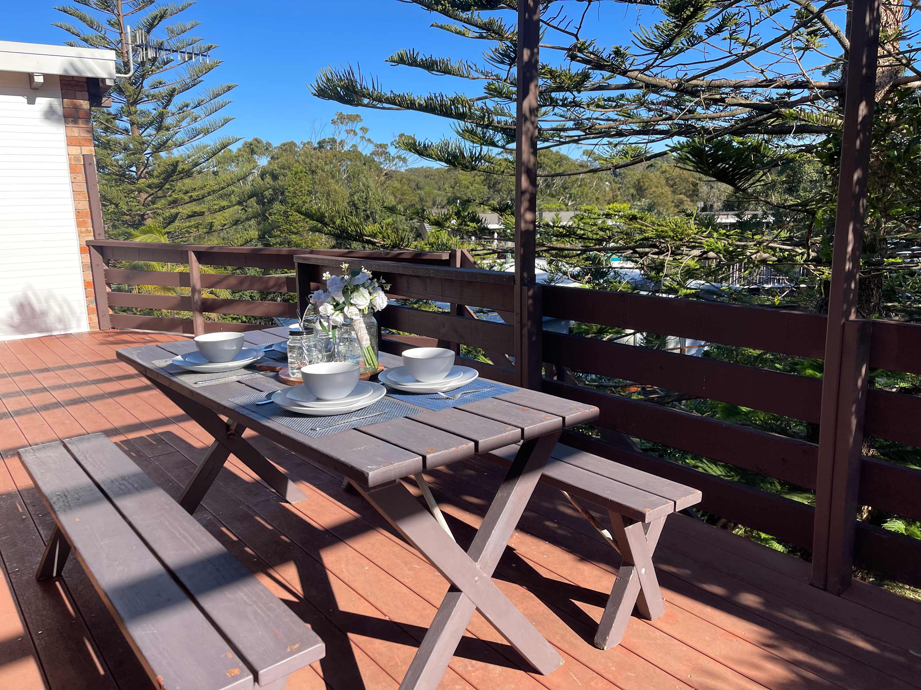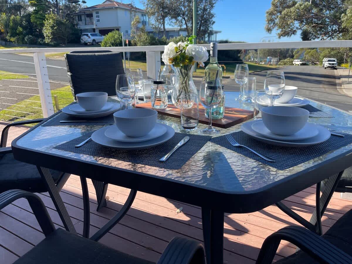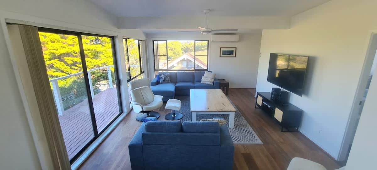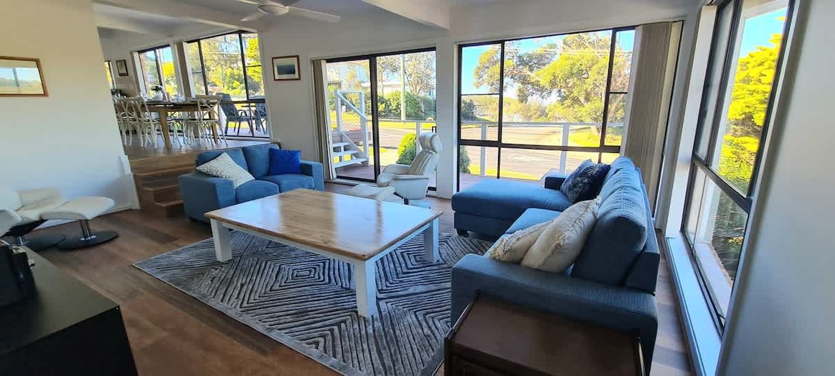 Situated at the north end of Mollymook Beach is this super-sized six-bedroom holiday home. Enjoy the beautiful ocean views from the deck and recently renovated upstairs living areas. Offering the flexibility of both upstairs and downstairs living this truly spacious home is the perfect accommodation for the larger family. Enjoy large spacious open plan living and dining room with large dining table to enjoy family meals, the living room has a new smart tv and comfortable lounges. The kitchen includes cooktop and oven, microwave and dishwasher. Choose from two decks to sit and relax in the sun!