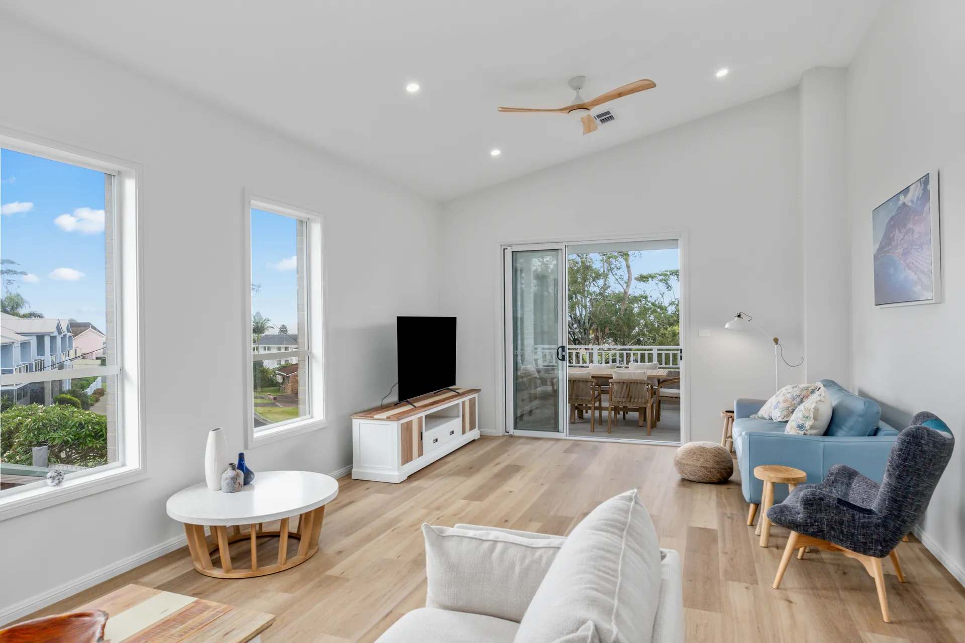 Step outside to enjoy a balcony and patio perfect for alfresco dining, complete with a BBQ for long summer evenings. An internal laundry with washer and dryer, off-street parking for two cars, and family-friendly amenities make longer stays easy and convenient. Located just moments from Mollymook Beach, this home blends coastal charm with everyday comfort—an ideal setting for your next South Coast getaway.