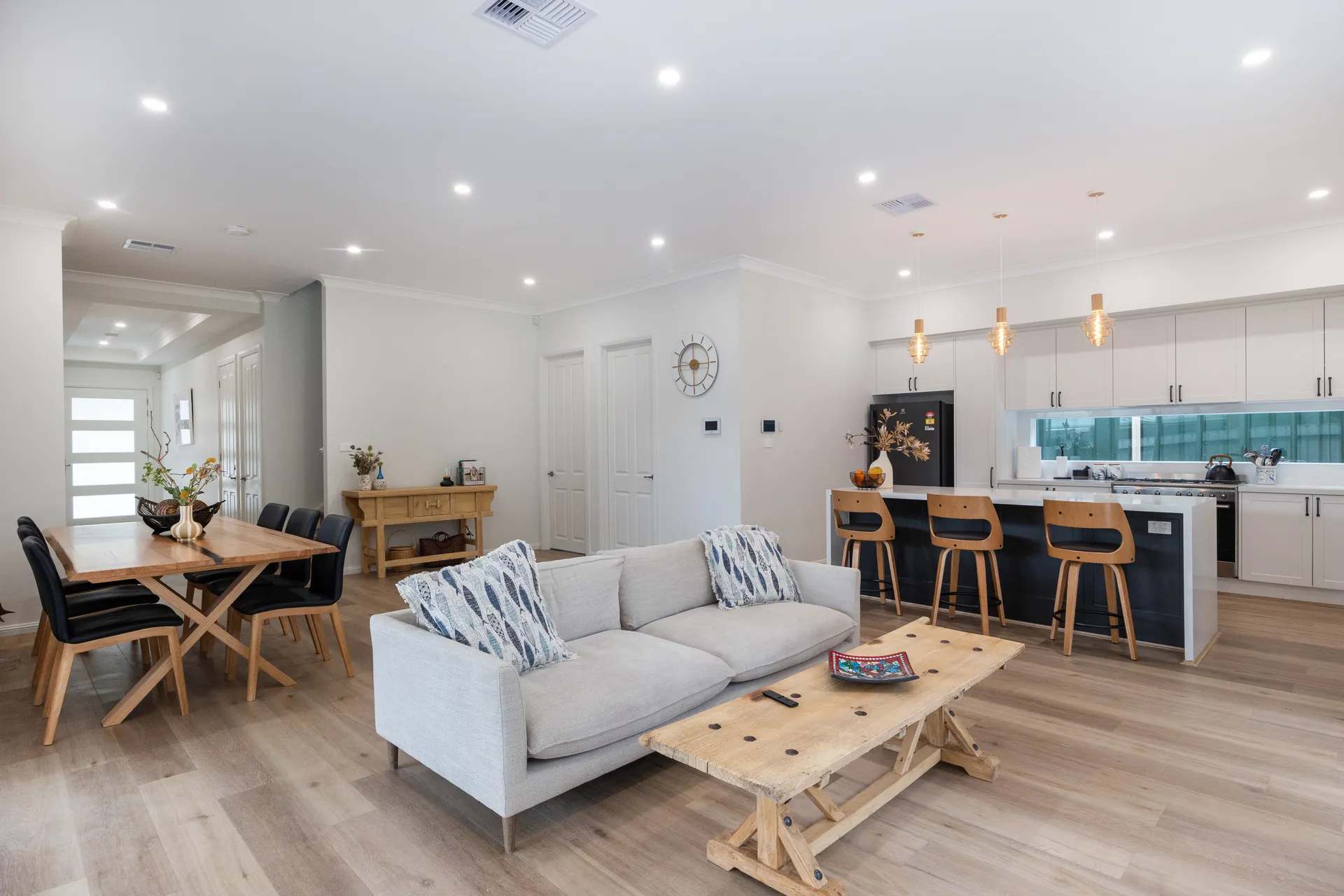 Across two levels, the home provides six comfortable bedrooms and three bathrooms, ensuring space and privacy for everyone. Whether you’re travelling with family or friends, the layout is designed to balance shared living with individual comfort, so guests can unwind together while still enjoying their own retreat.