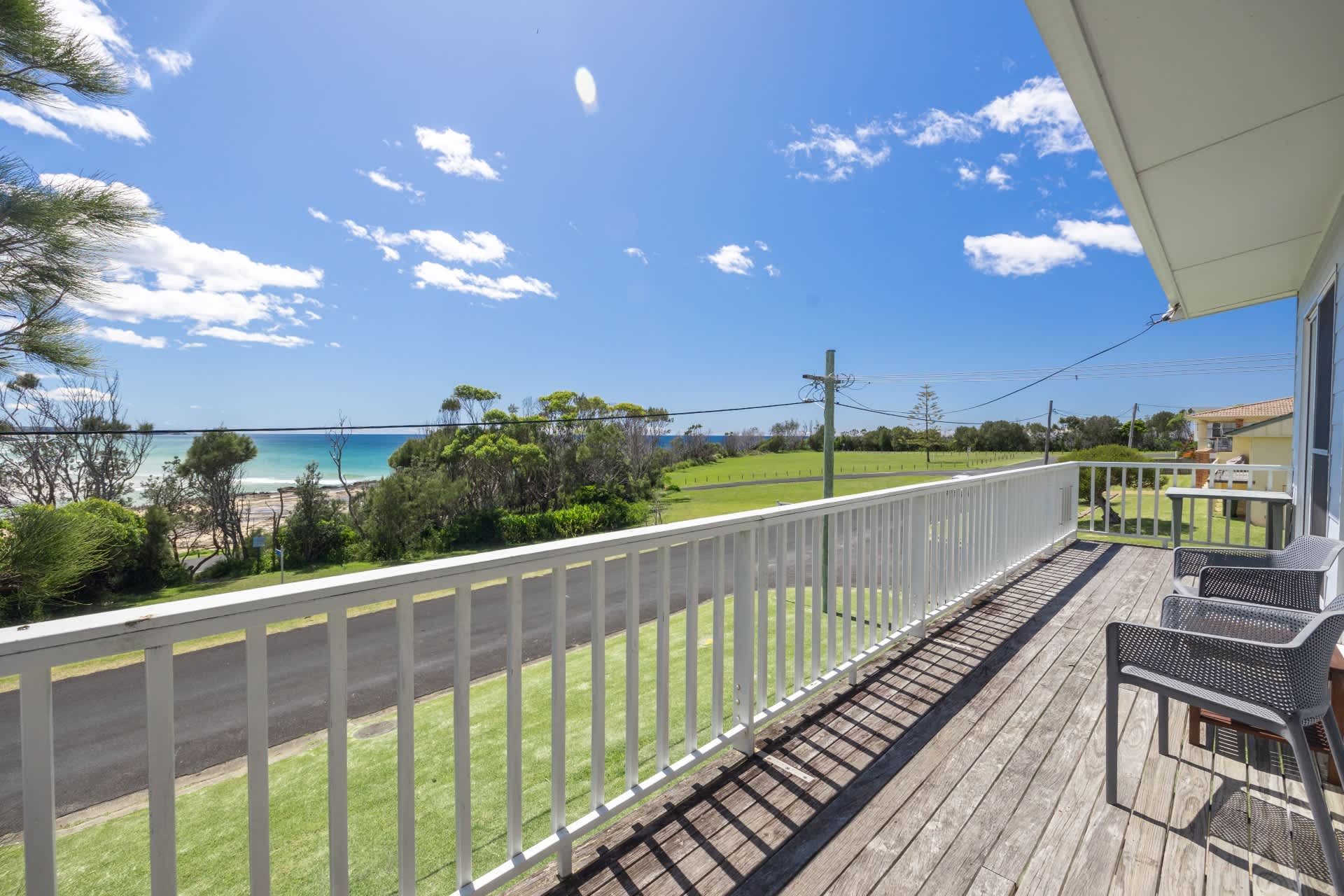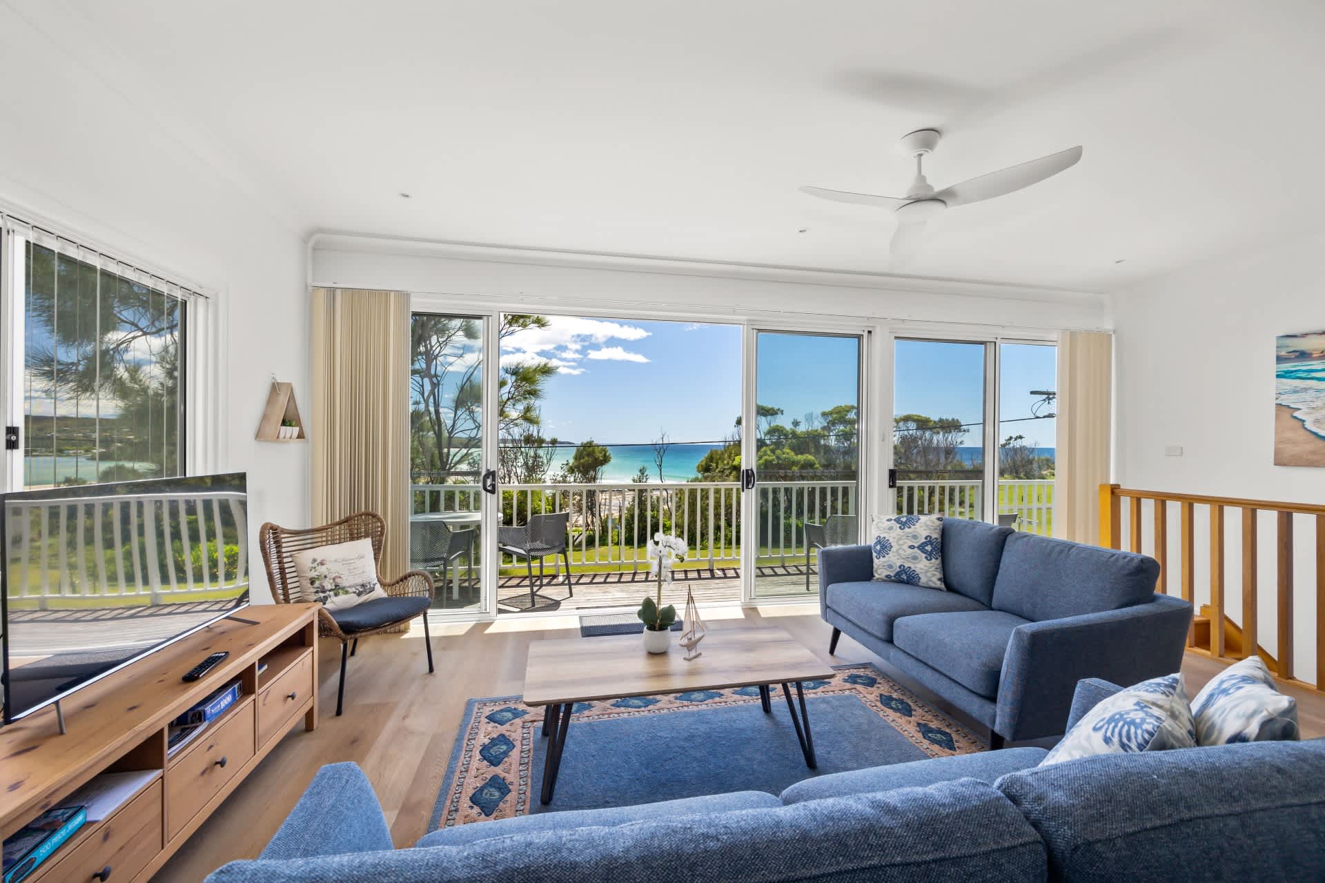 Seaside Beach House is set high on the head land, this beach house is loaded with character and offers beautiful ocean views from the large open plan living areas and the front deck. Full length windows to capture the spectacular views of Burrill Beach and the lake's entrance at Dolphin Point. Just metres to the sand and water's edge from the doorstep.
