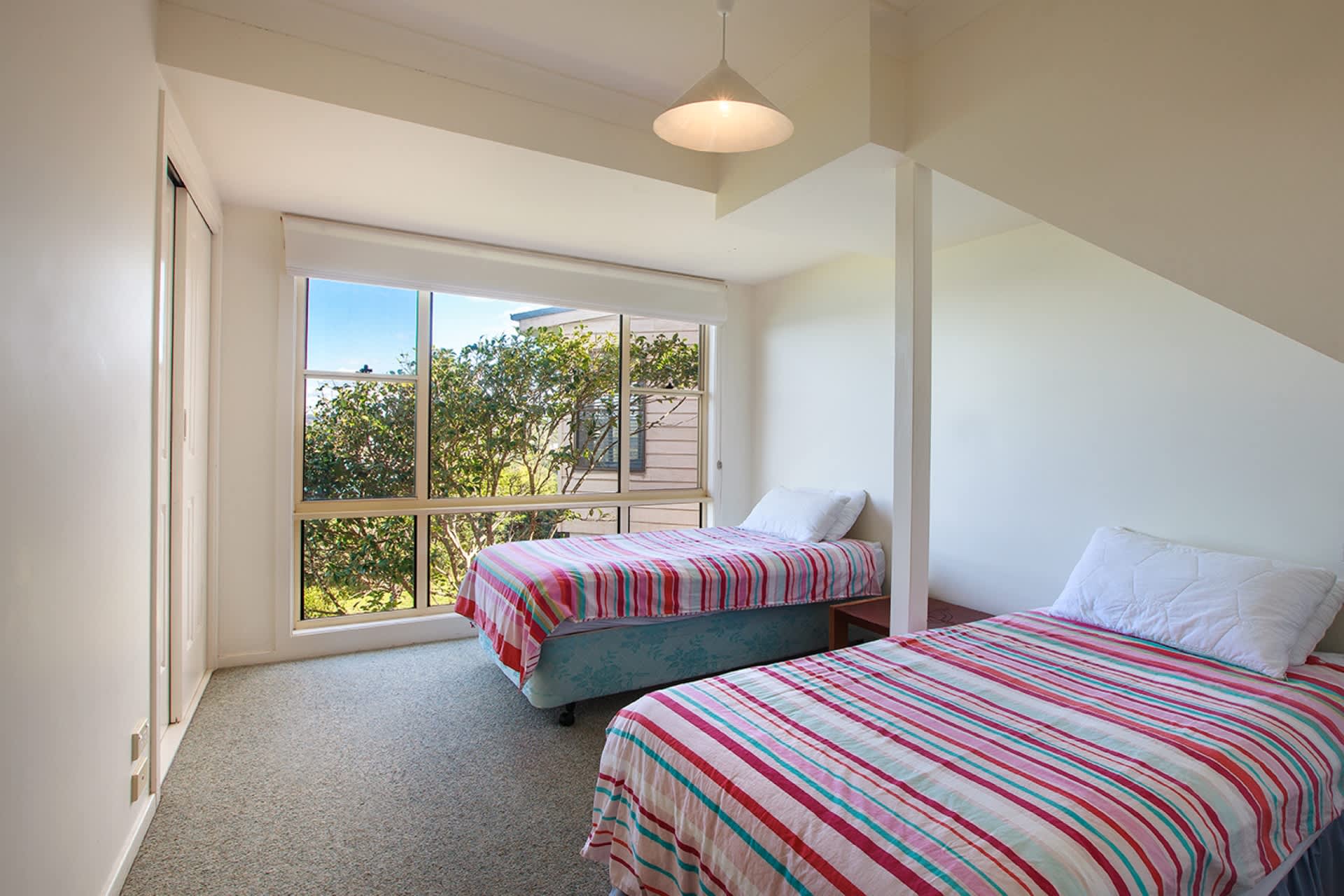 Bedroom 2 - 2 x single beds downstairs with ceiling fans/heaters