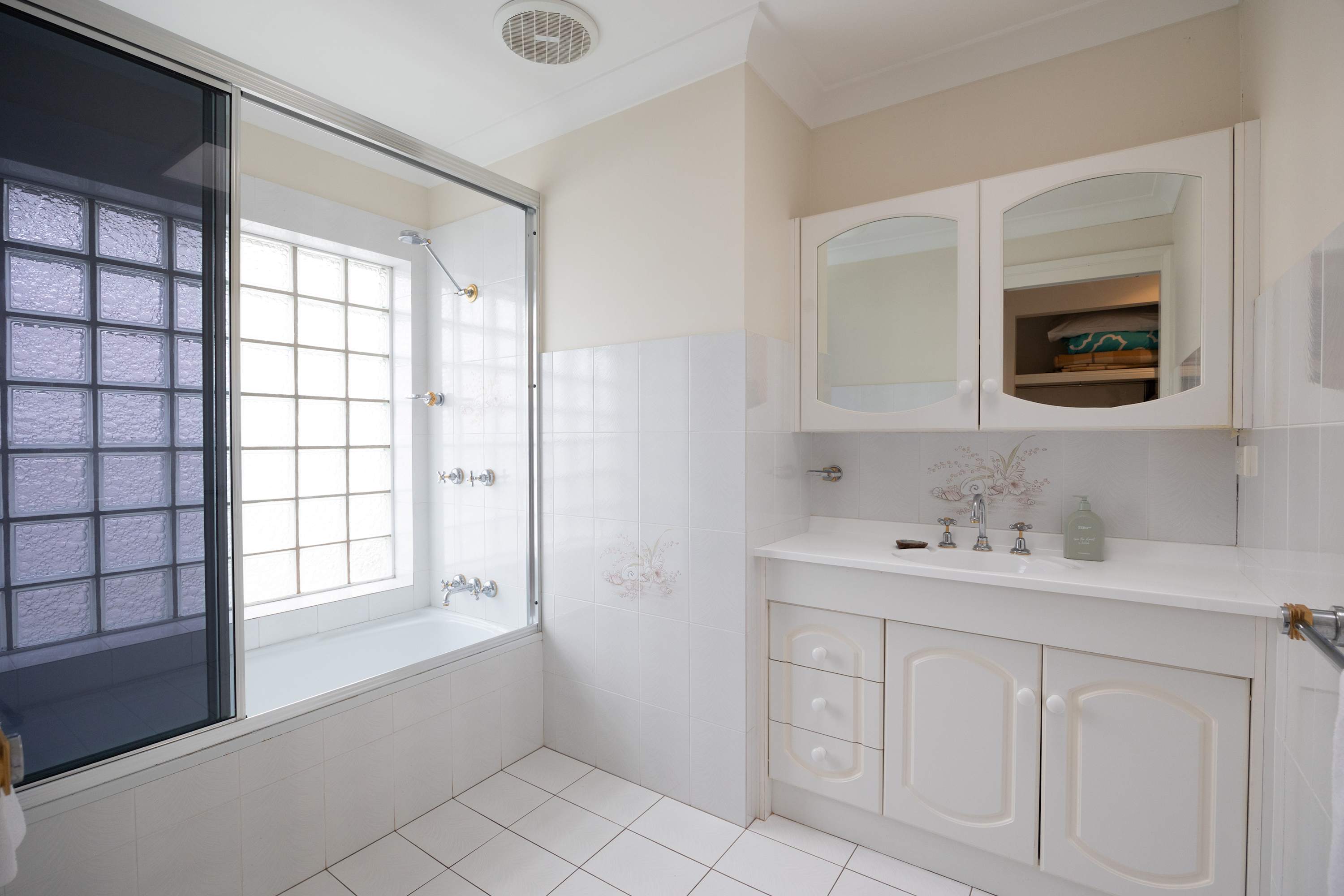 Ensuite 3: Shower, toilet, bath and vanity
