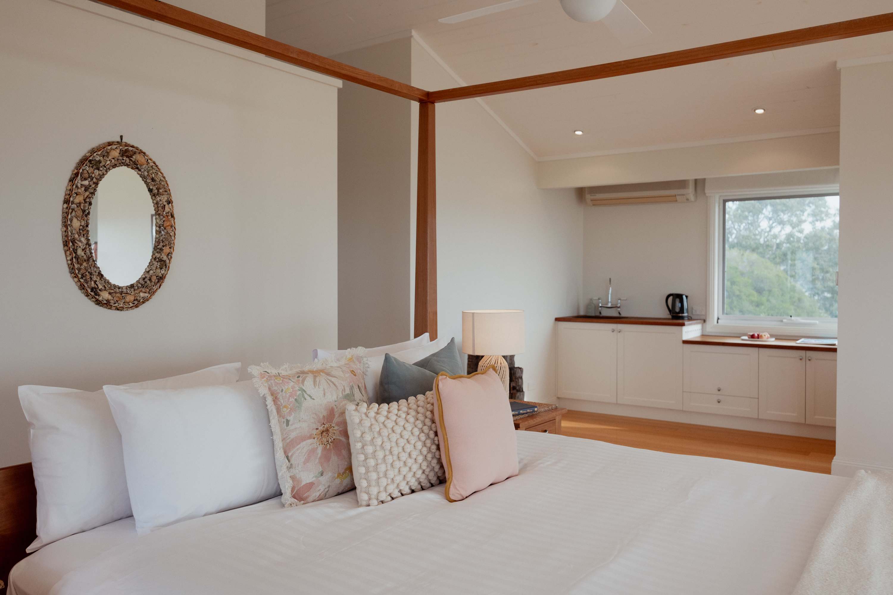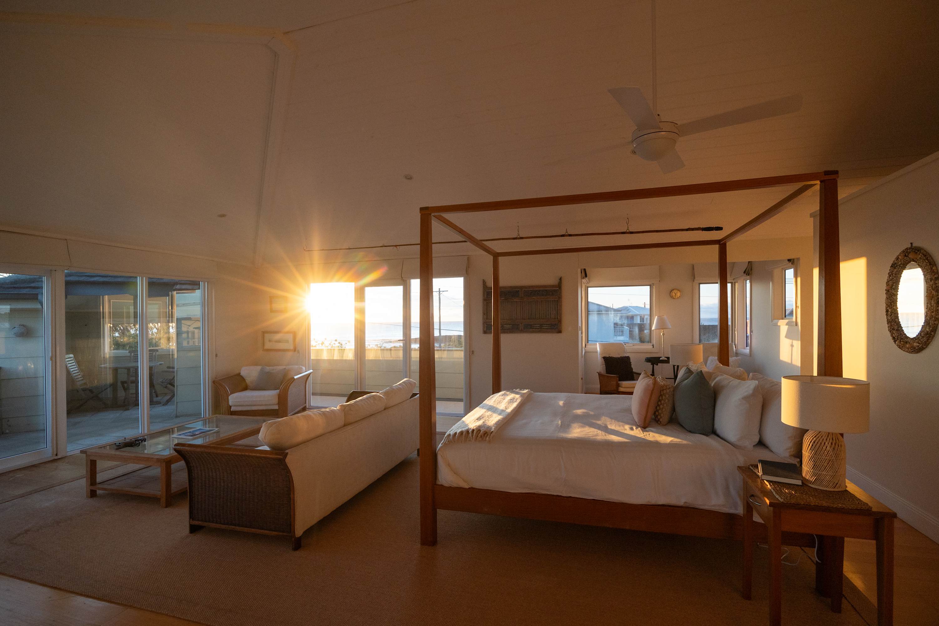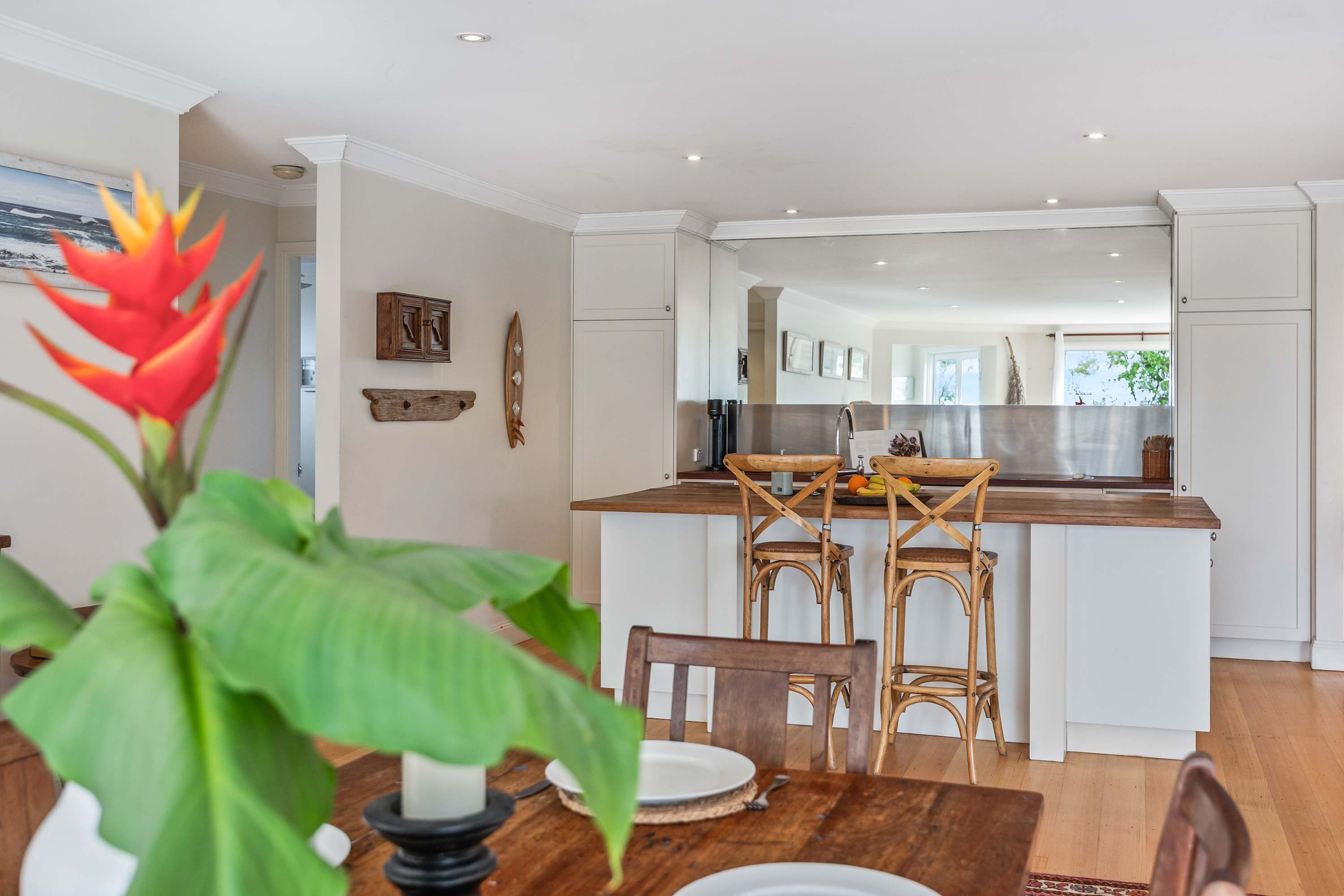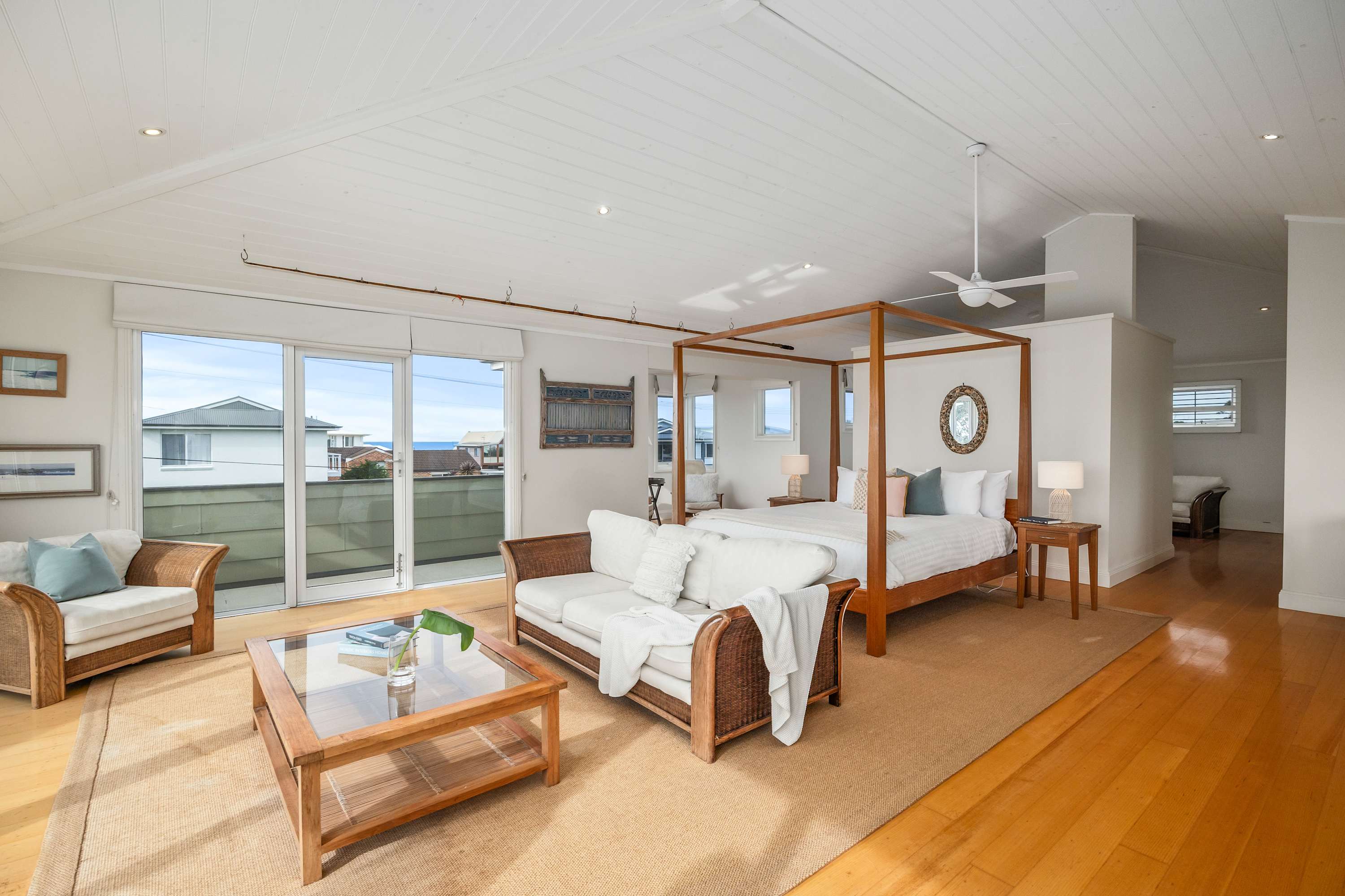 The highlight of the property is the upstairs parents' retreat, which boasts the best of both worlds with breathtaking beach views and beautiful views of Pigeon Hose Mountain where you can watch the sun set, with a verandah providing a private escape. The parents retreat features a kings size bed, small kitchenette and sitting areas.